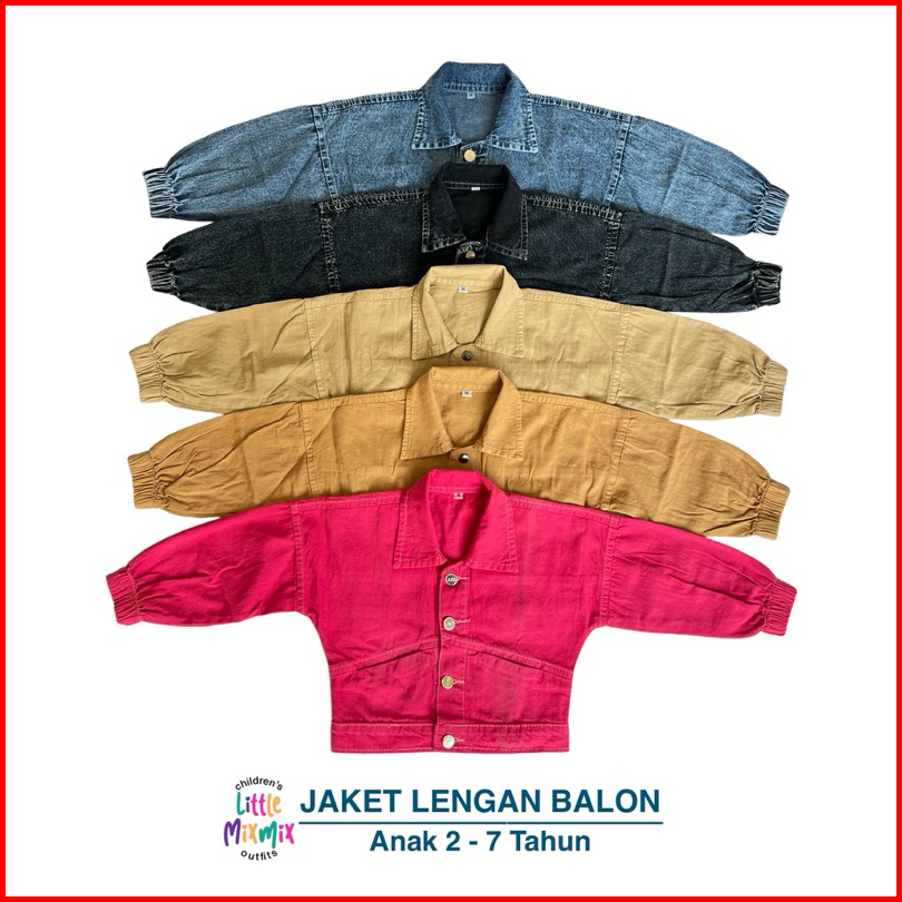 Mixmix Jane - Jaket Jeans Oversize Lengan Balon Anak 2 - 7 Tahun