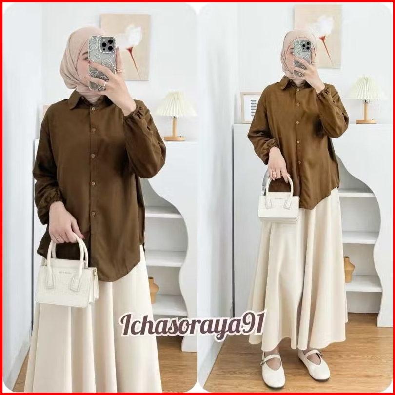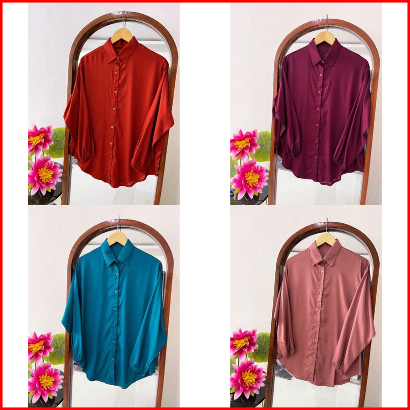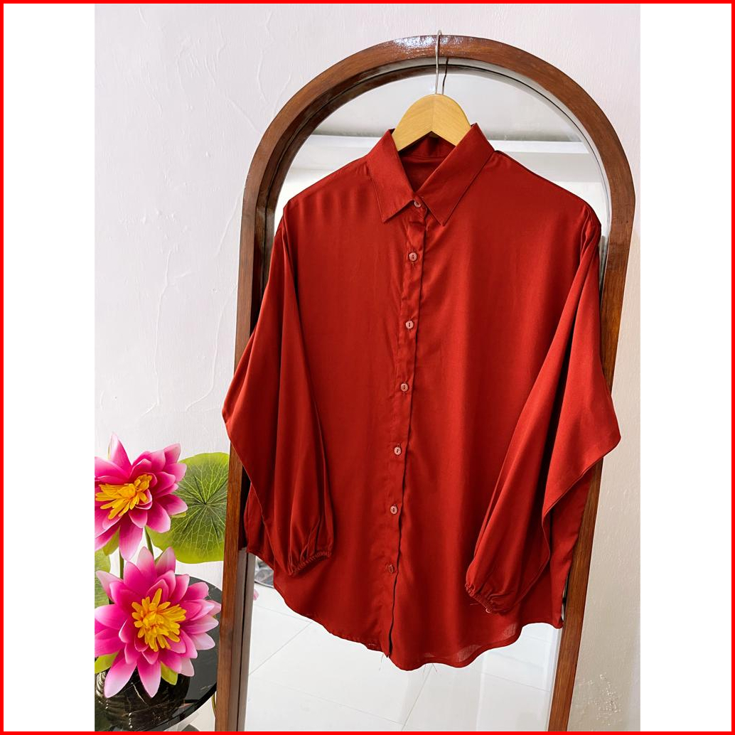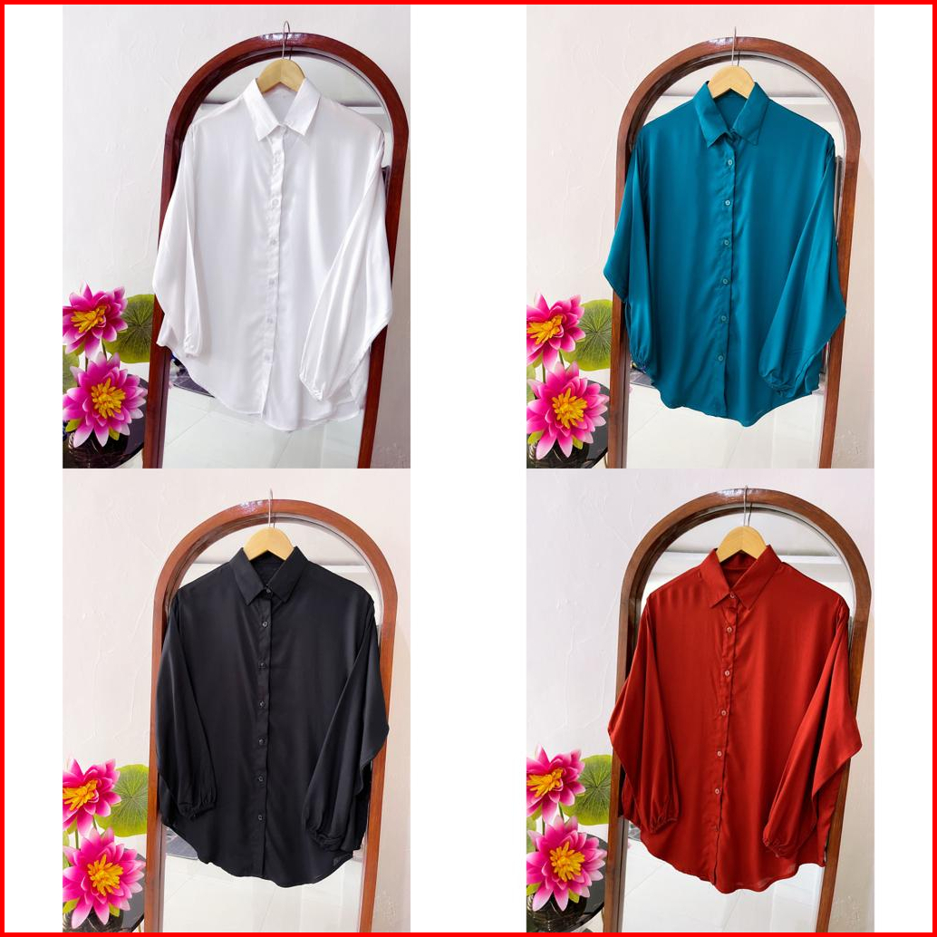 Kemeja Wanita Rayon Oversize Polos Bahan Rayon Ld 120 Cm Pergelangan Karet