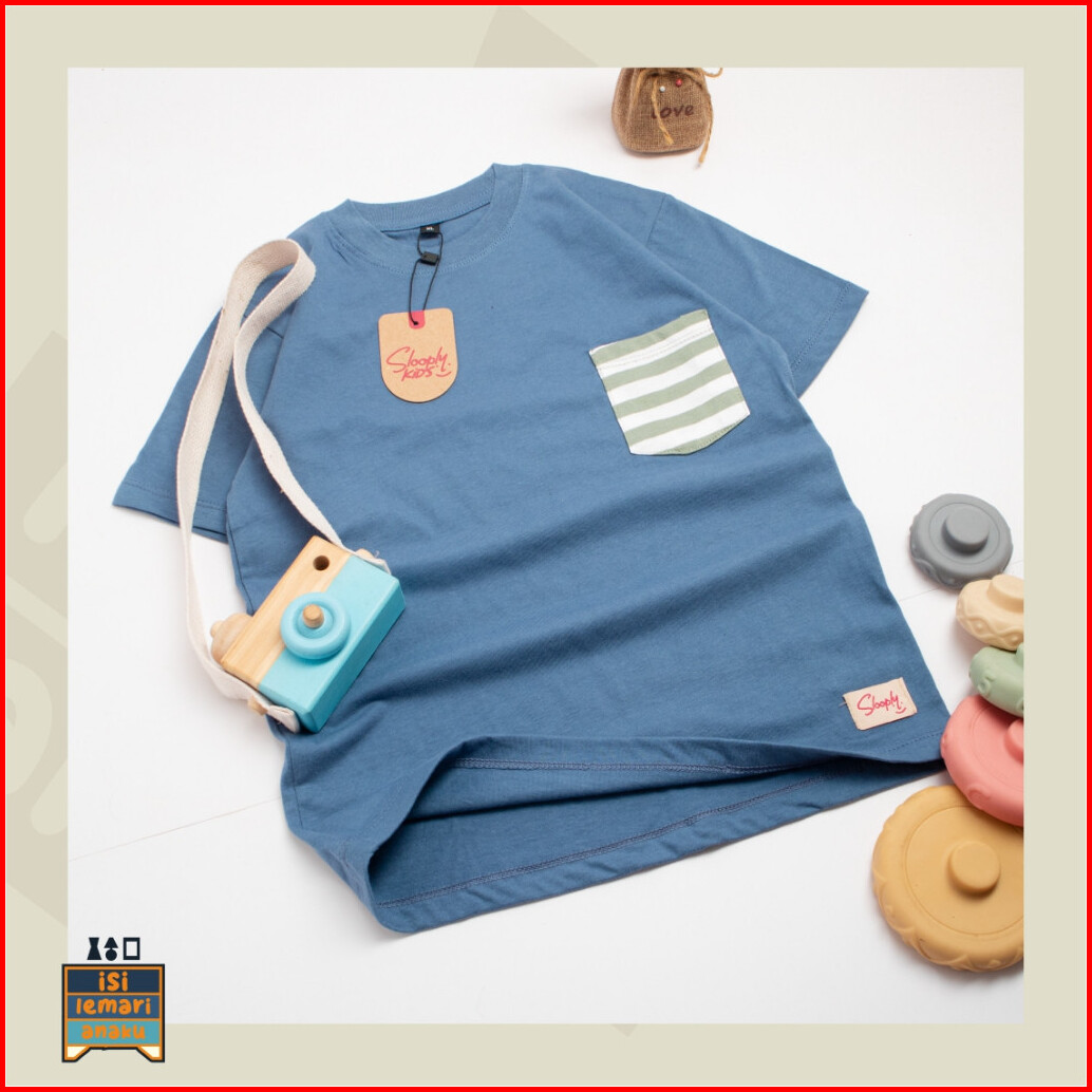 Kaos Polos Anak Saku Garis Lucu Bahan Katun Lengan Pendek Laki Laki Perempuan 1 Sampai 8 Tahun