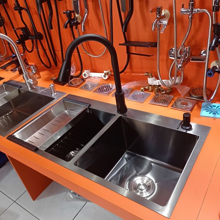 WASTAFEL CUCI PIRING SET UKURAN 82X45X23 CM / BAK STAINLESS KITCHEN SINK 2 LUBANG 8245-BK SUS 304