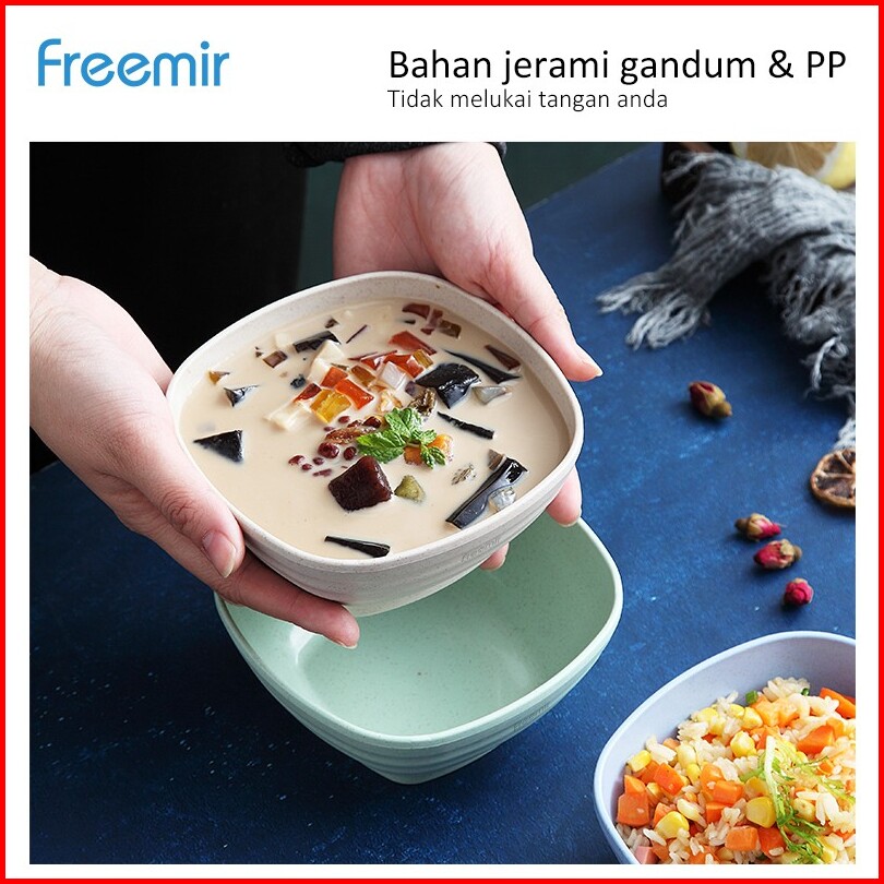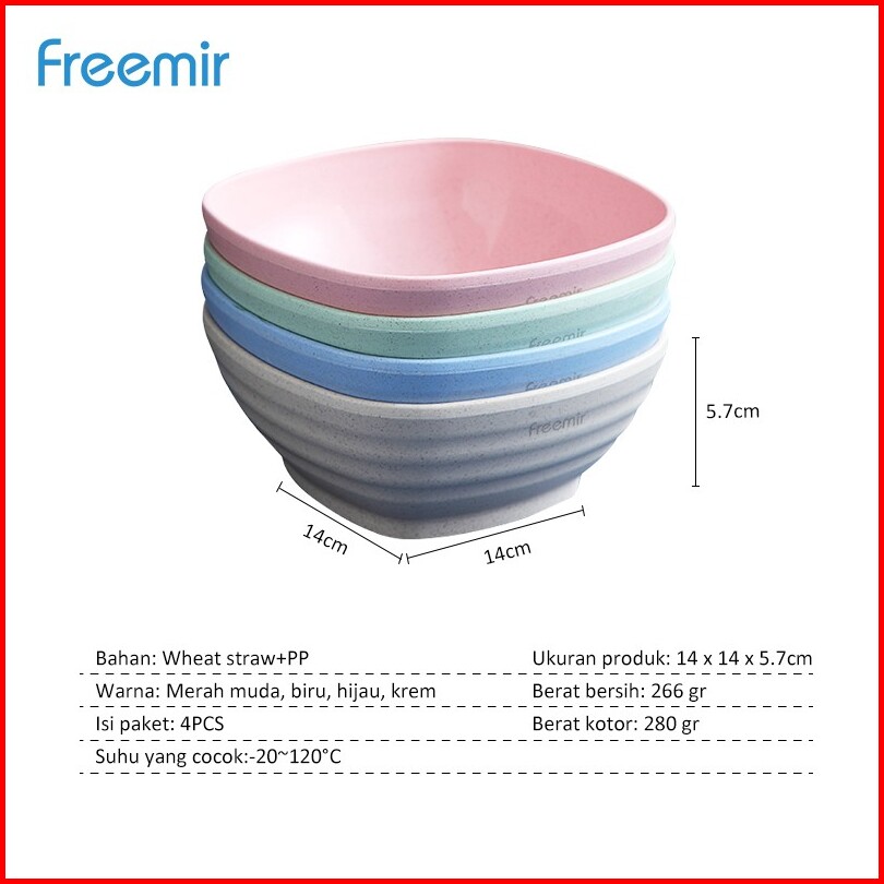 Freemir Set 4 Pcs Mangkuk Kotak 14cm Wheat Straw Square Bowl Warna Warni Set 4 Pcs Bpa Free