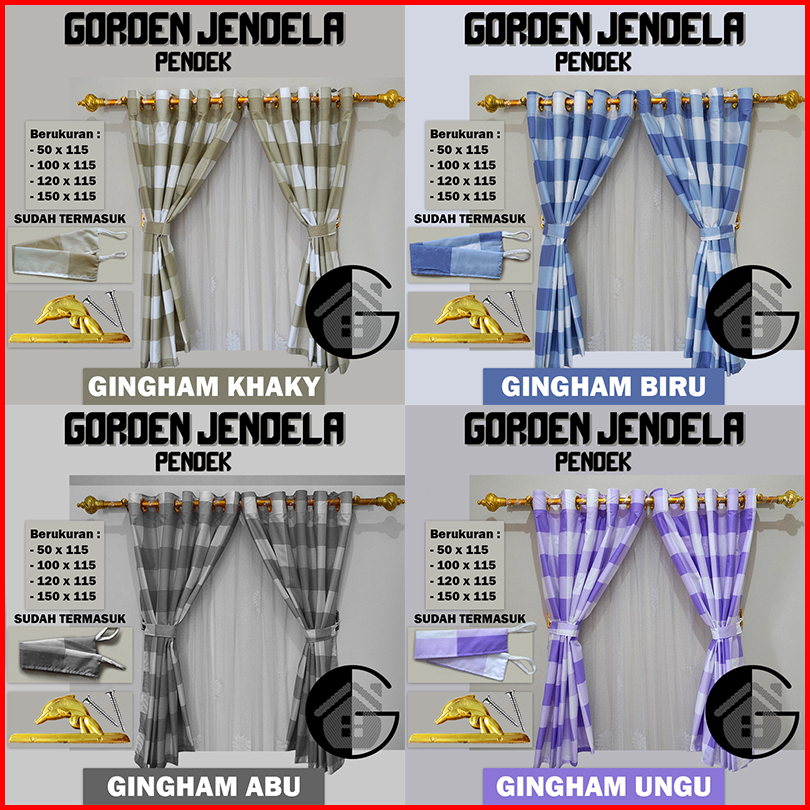 Gorden Jendela Kamar Gorden Kamar Tamu Gorden Minimalis Pendek Tinggi 120cm Ring Hordeng Smokring