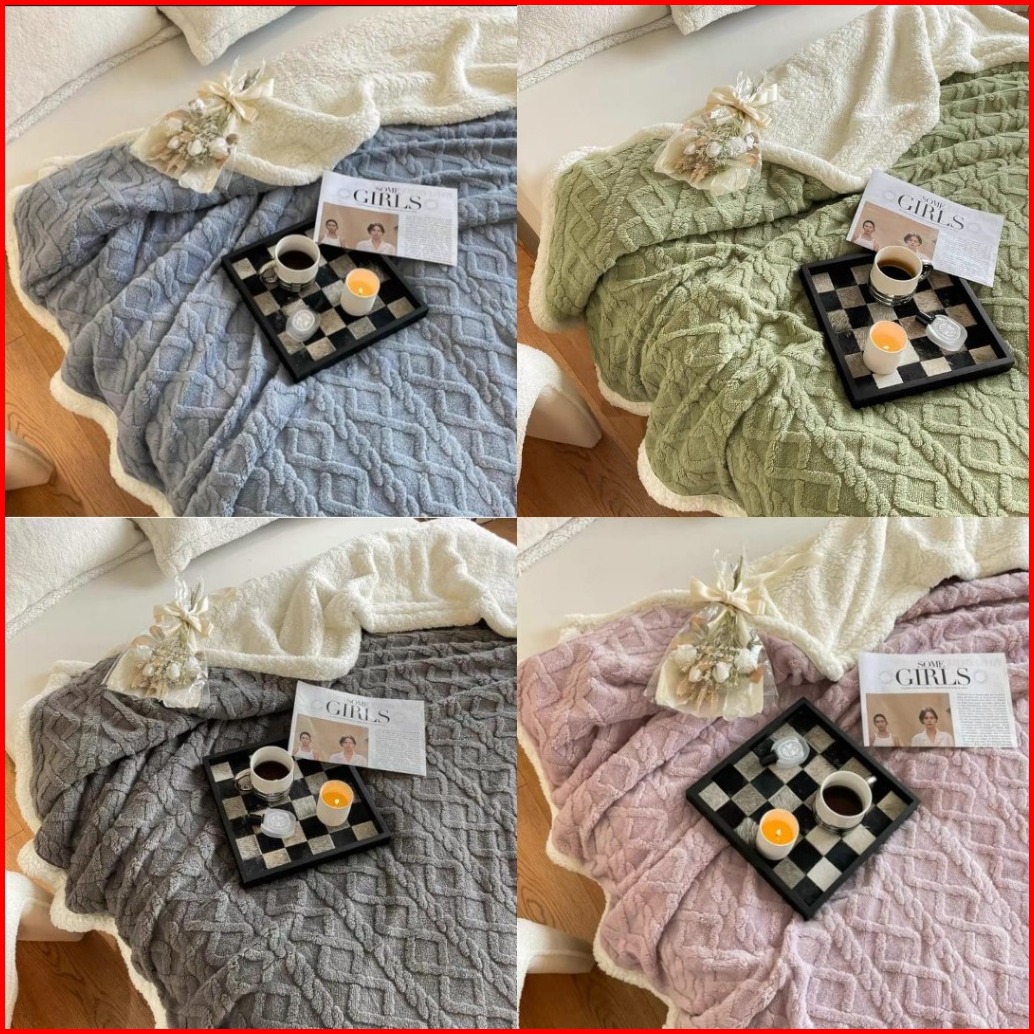 Selimut Bulu Domba 2 Sisi Selimut Waffle Selimut Domba Ukuran 180x200 Tebal Emboss Anti Alergi New Arrival