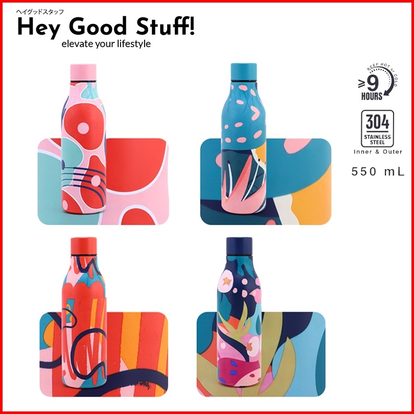 Botol Termos Air Panas Portable Colorful Aesthetic Stainless Steel Insulated Vacuum Flask 550 Ml Japanese Style