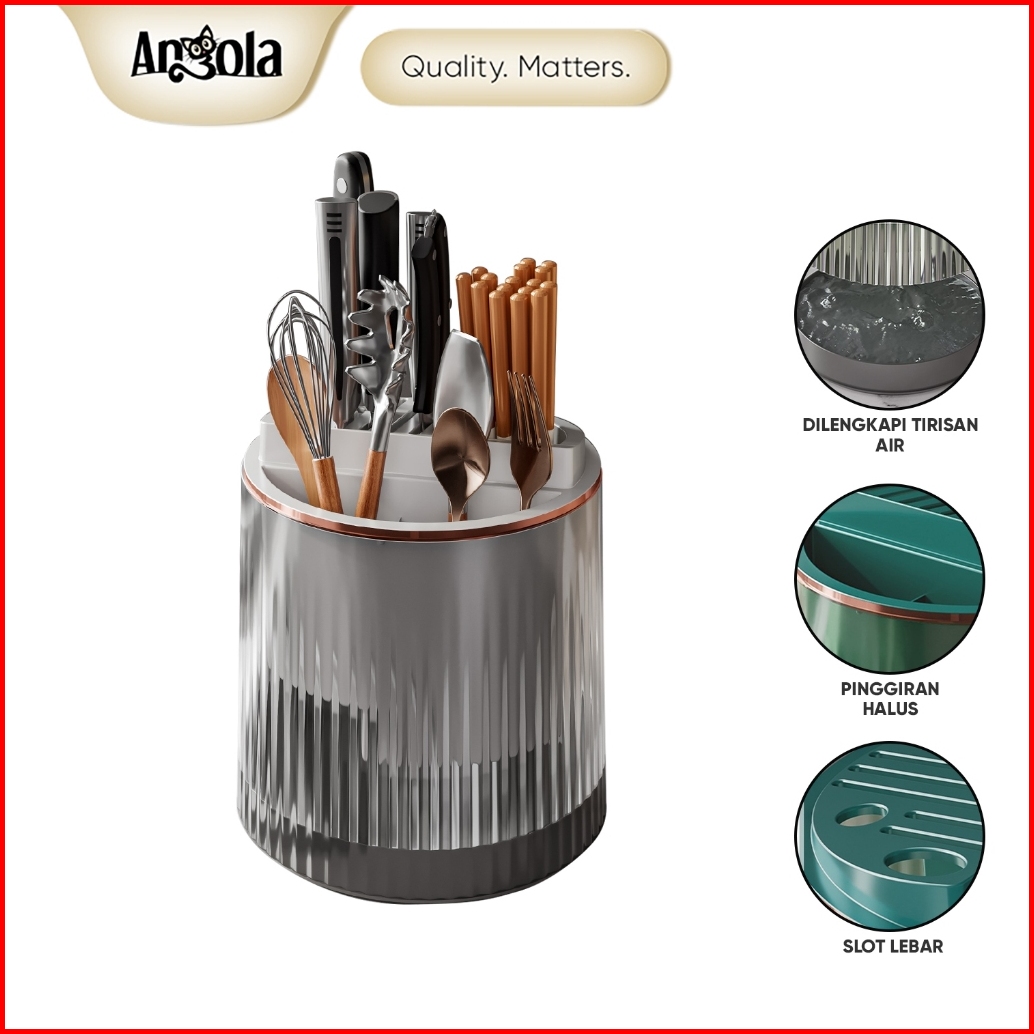 Angola Tempat Sendok Garpu Pisau Putar E41 Rak Penyimpanan Alat Makan Alat Masak Putar 360 Derajat