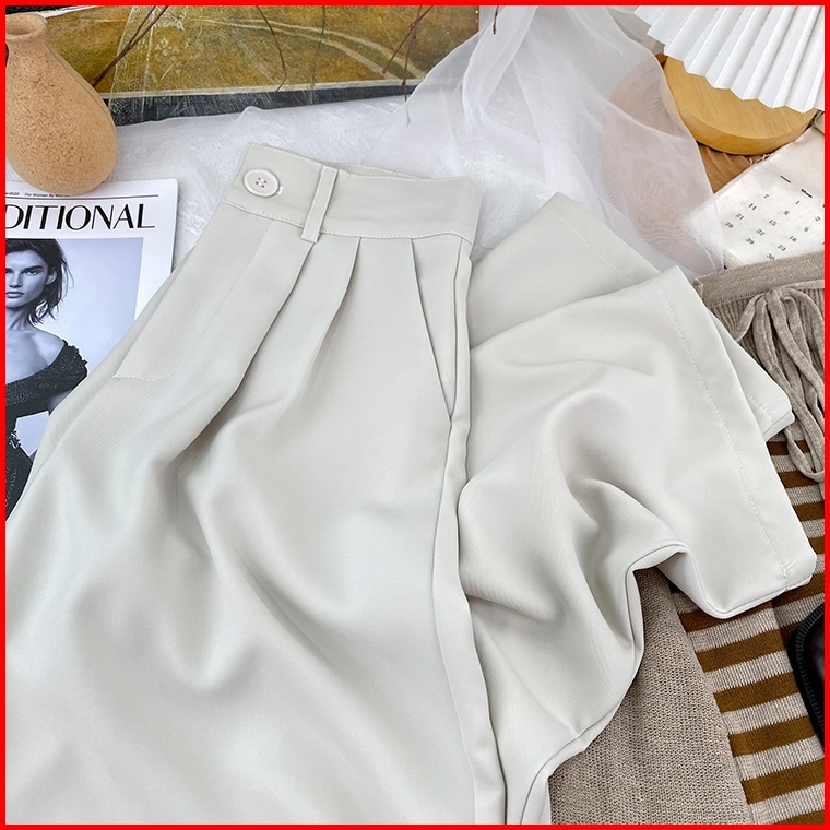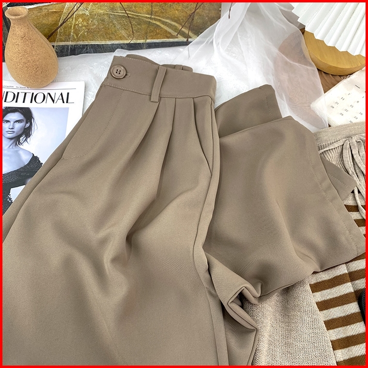 Po Floret Celana Setelan Pinggang Tinggi Gaya Korea Celana Lurus Vertikal Wanita