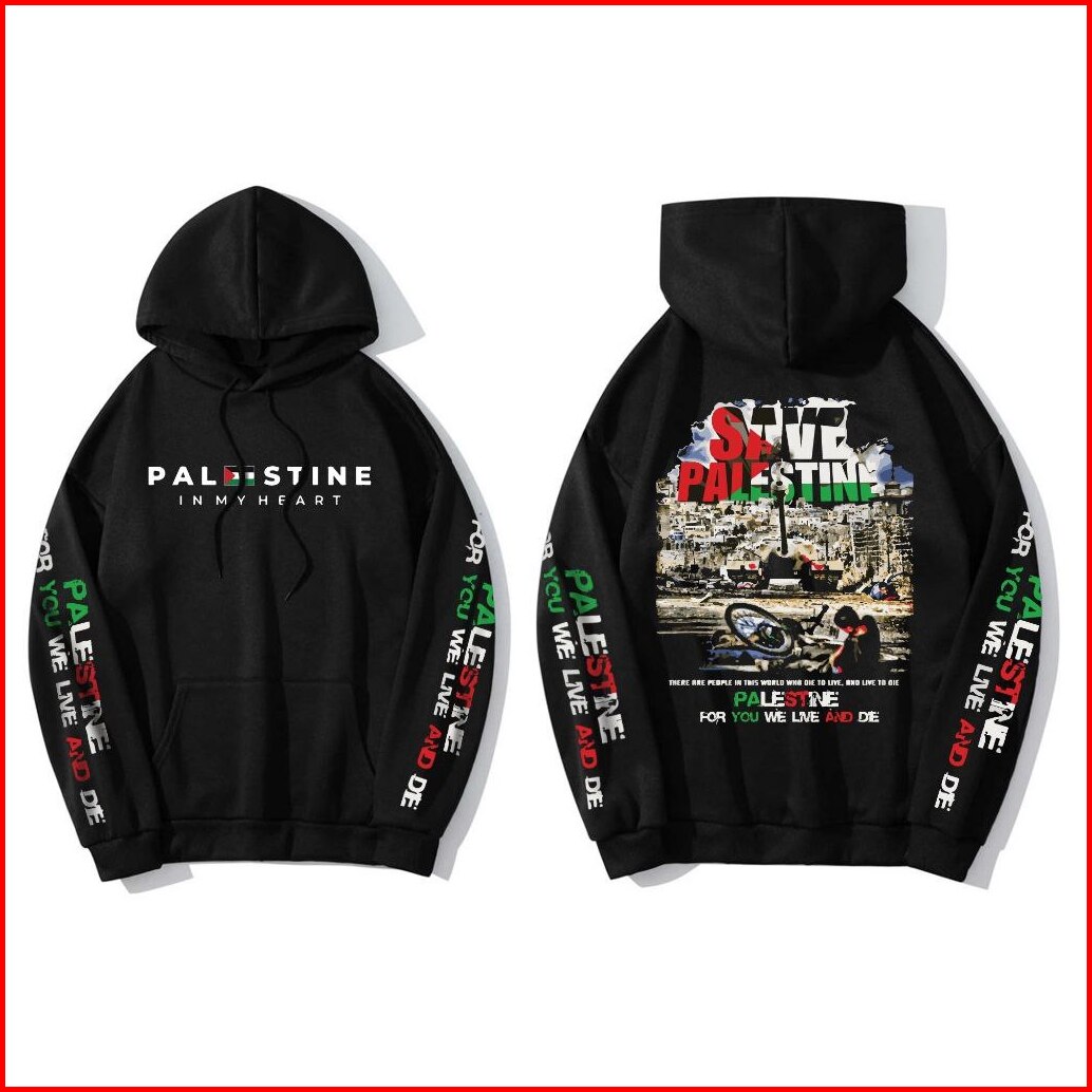 Sweater Hoodie Save Palestin Jaket Pullover Sablon Printing Pria Wanita Premium Bahan Tebal