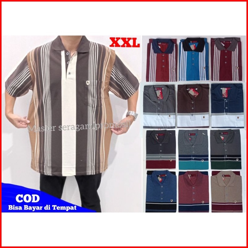 Terbaru Kaos Kerah Pria Motif Salur Xxl Bigsize - Kaos Kerah Katun Salur Pria - Kaos Kerah Wangky Bapak Bapak - Kaos Sal