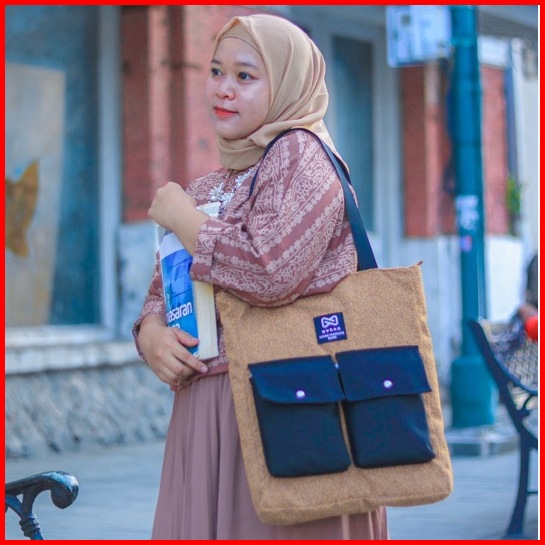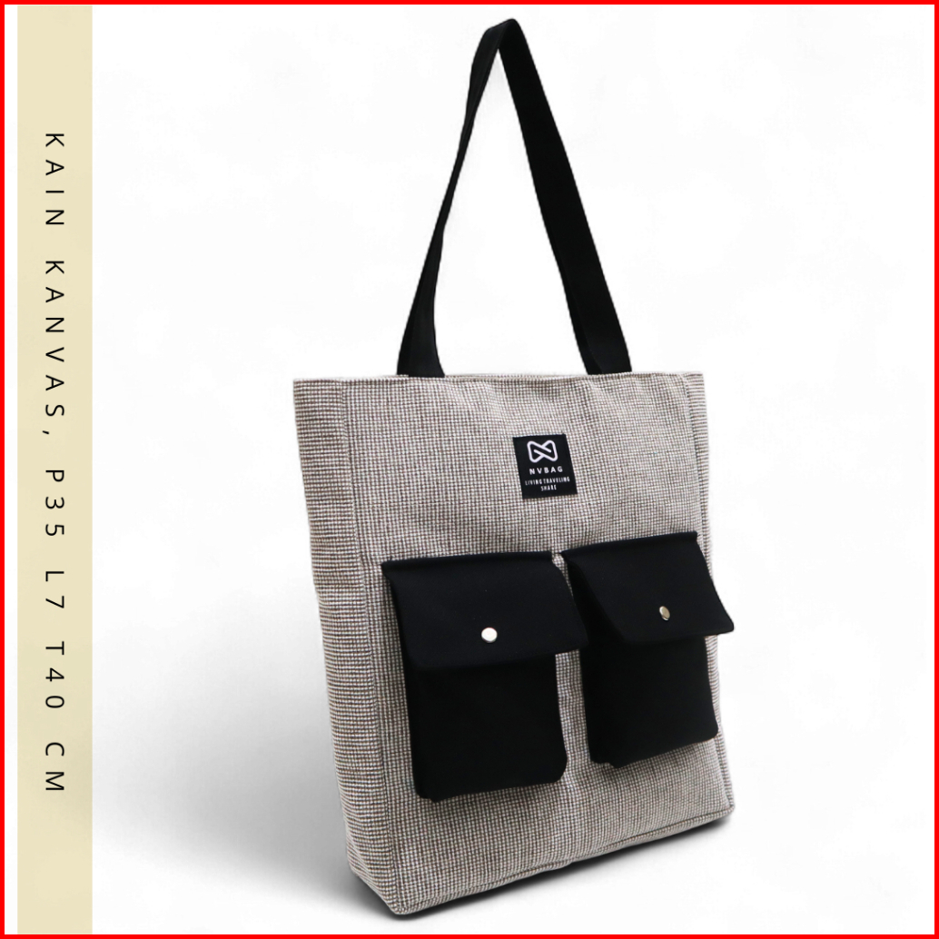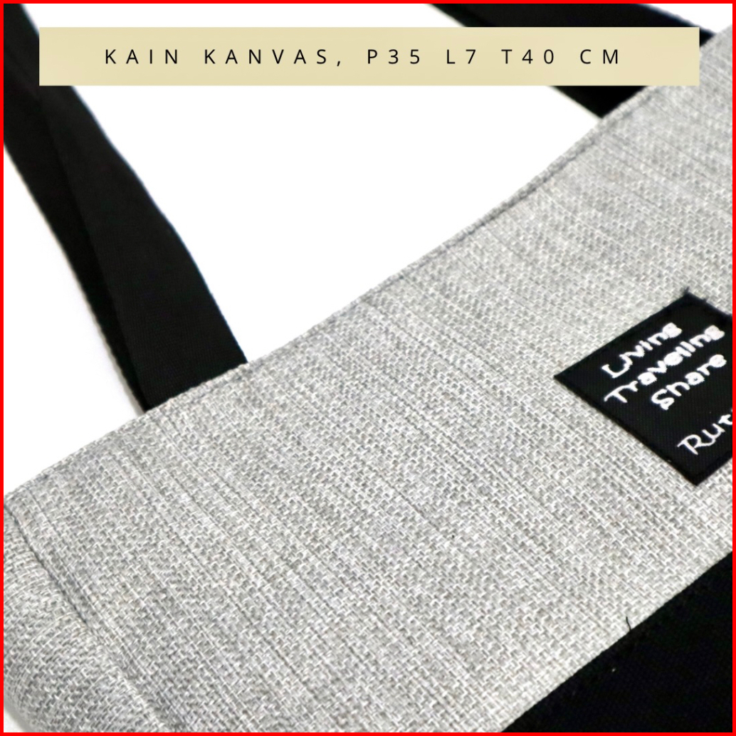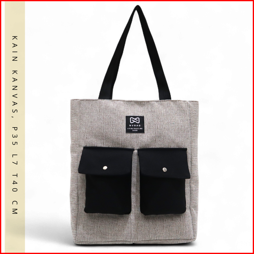 In Aja Tas Totebag Ukuran Sedang Semi Kain Metro Wanita Awet Kuat Totebag Elegan Hitam Gelap