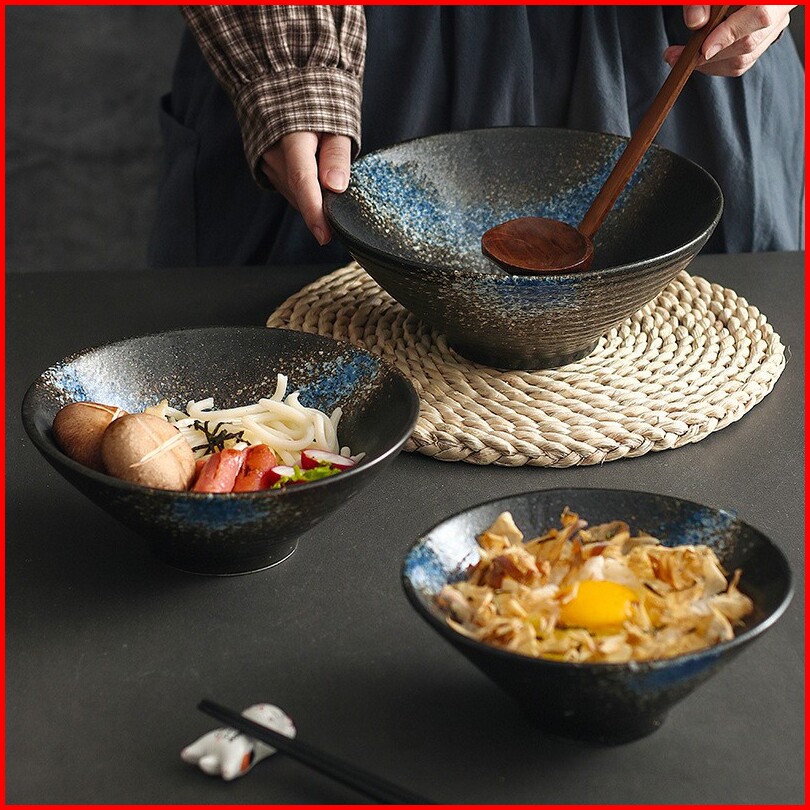 Jafa Black Series - Mangkok Mie Sup Besar Nuansa Jepang Warna Hitam Japanese Ceramic Salad Ramen Bowl