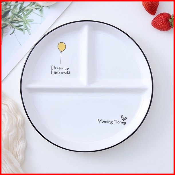 Piring Diet Keramik Estetik Aesthetic Plate For Diet Divided Ceramic Plate Korean Plate Piring Korea Aesthetic