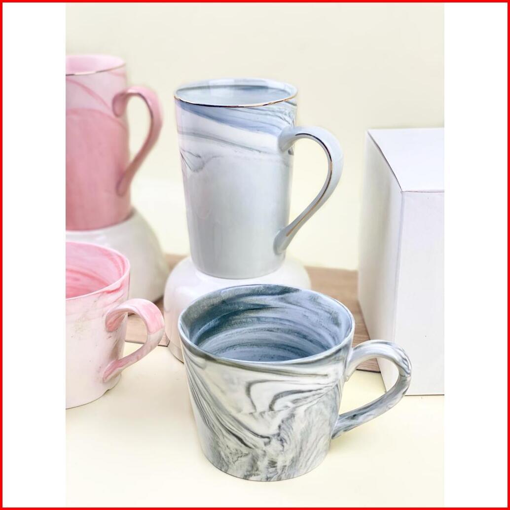 Ashome Gelas Minum Keramik Bentuk Tinggi Motif Marble List Elegan Tersedia Abu Marble Dan Pink Marble Gelas Minum Kerami