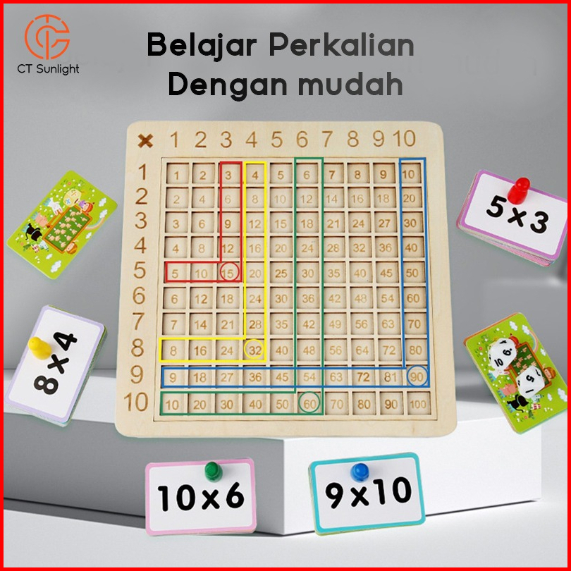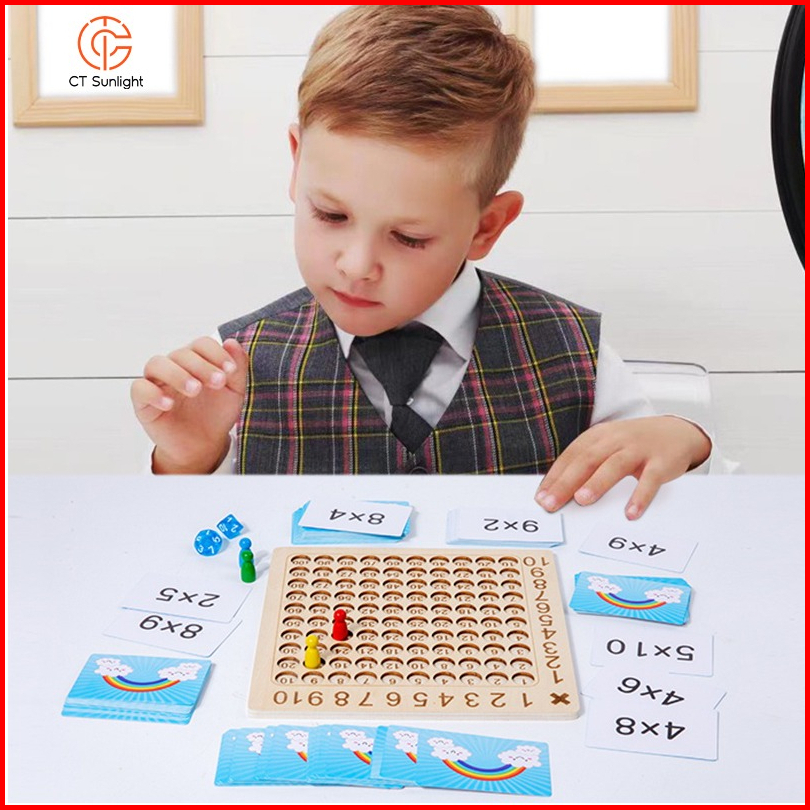 Mainan Papan Perkalian Bahan Kayu 99 Dengan Dadu Flash Card Untuk Anak Laki-laki Perempuan