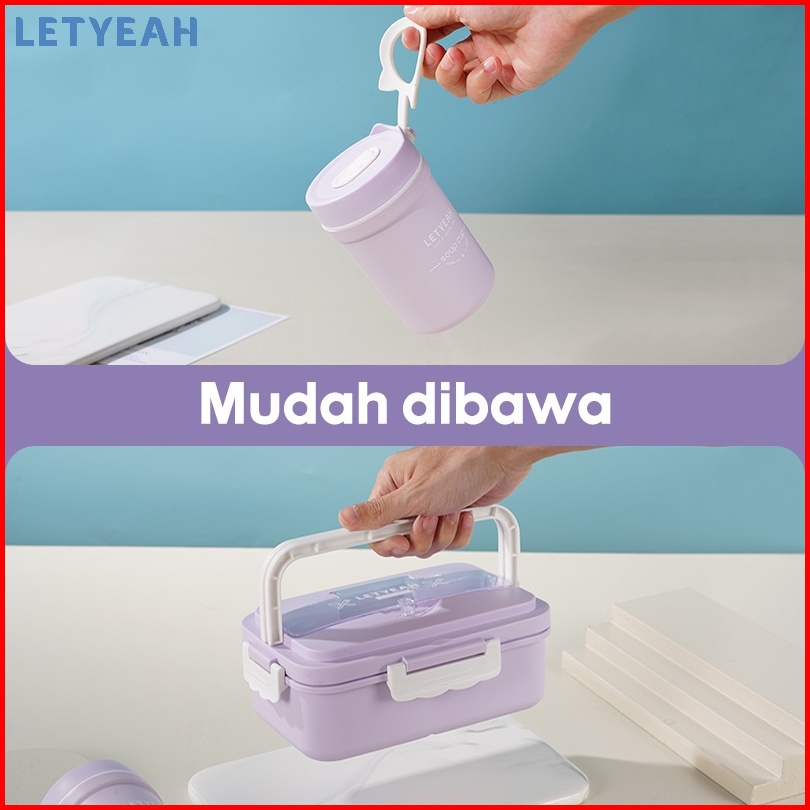 Letyeah Lunch Box Set Tas Bekal 1000ml Tempat Makan Kotak Makan Dan 330ml Cangkir Sup