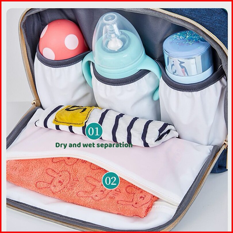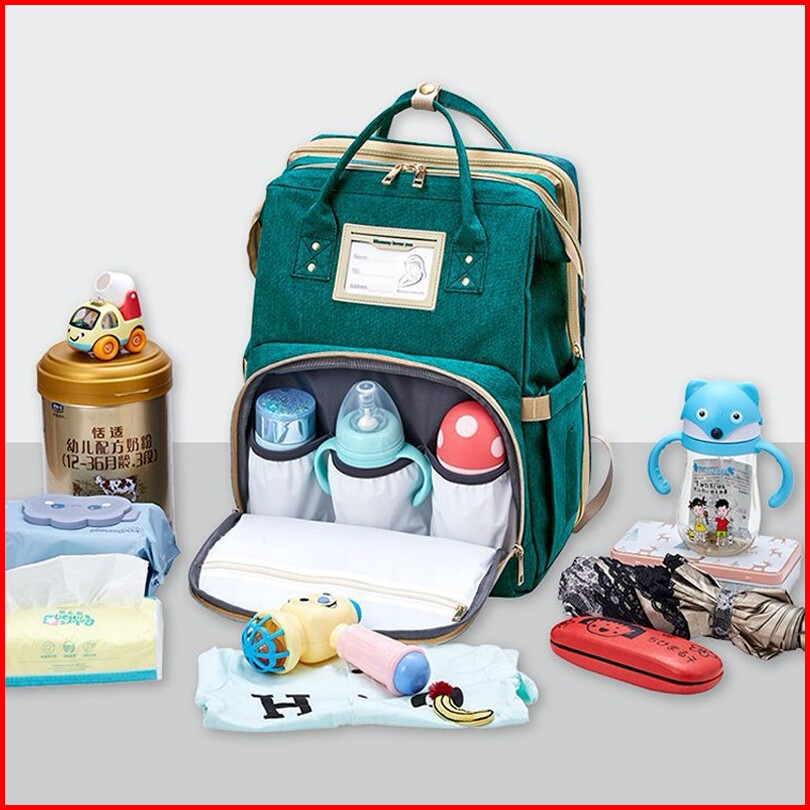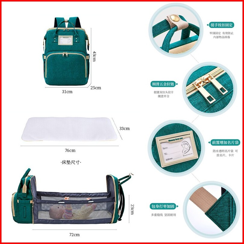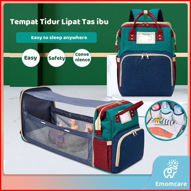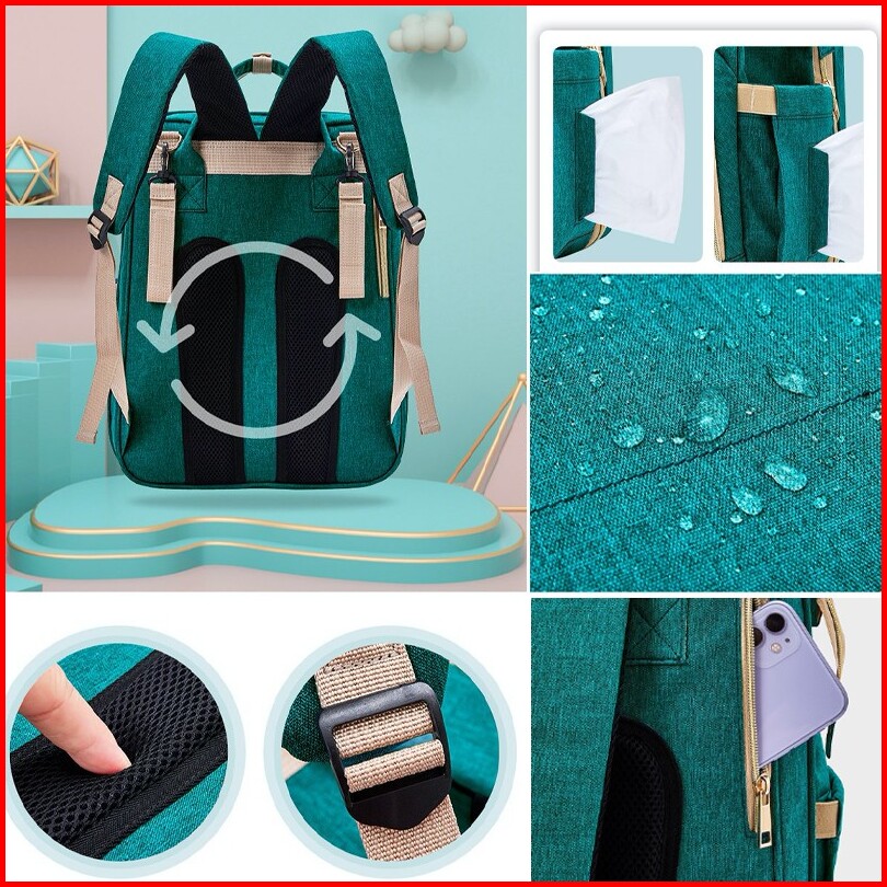 V2 Tas Bayi Multifungsi Tempat Tidur Lipat Baby Diapers Bag Perawatan Perlengkapan Ransel Backpack