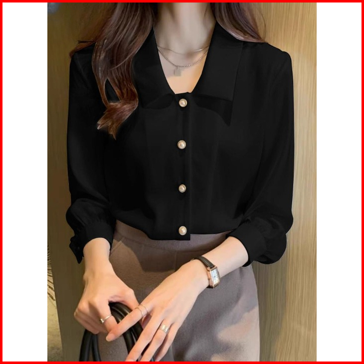 Calissa Fashion Kemeja Atasan Wanita Kantor Office Style Korea Lengan Panjang Model Amanda