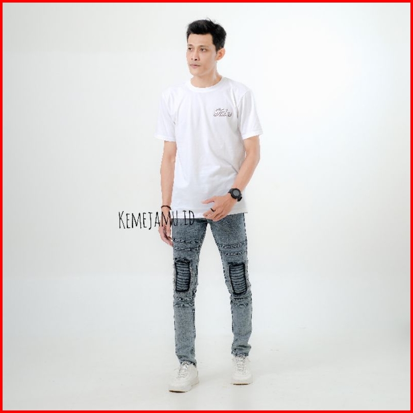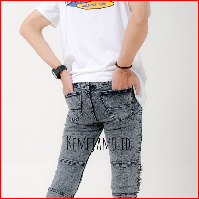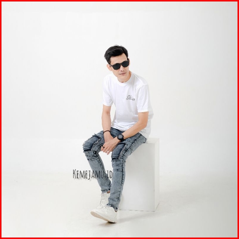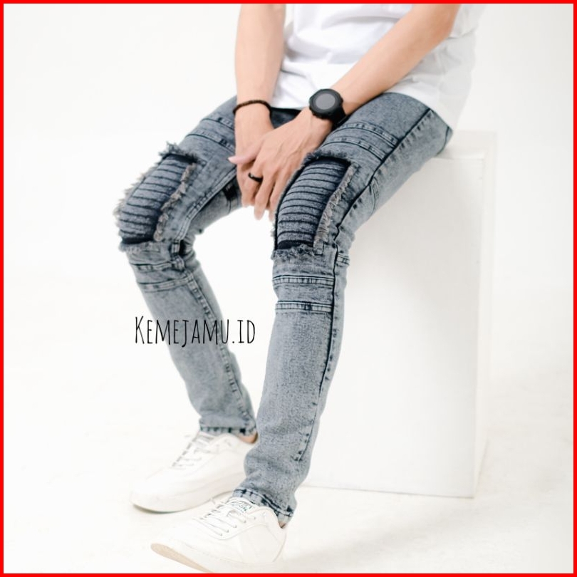 Celana Jeans Bikers Pria Patch Lutut Skinny Celana Jeans Bikers Pria Celana Jeans Bikers