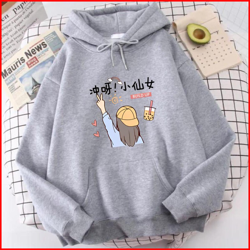 Build Up Bobba Sweater Hoodie Perempuan Dewasa Bahan Premium Distro Size M-xxl Sablon Dtf