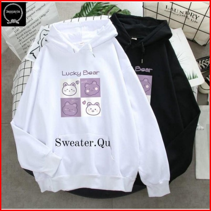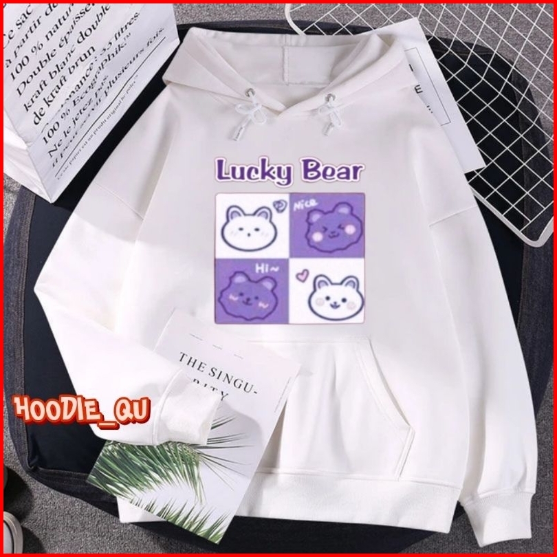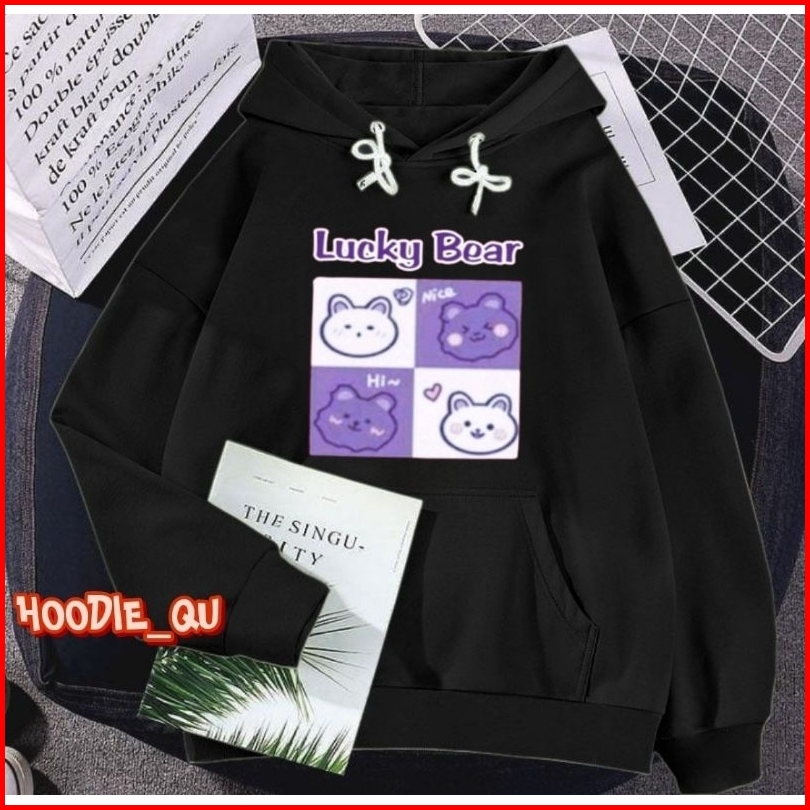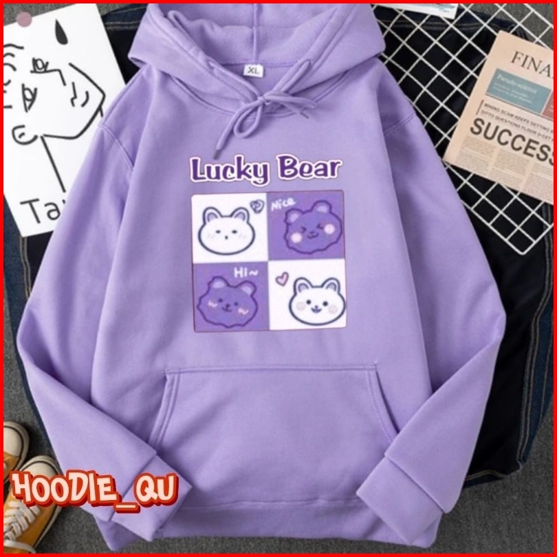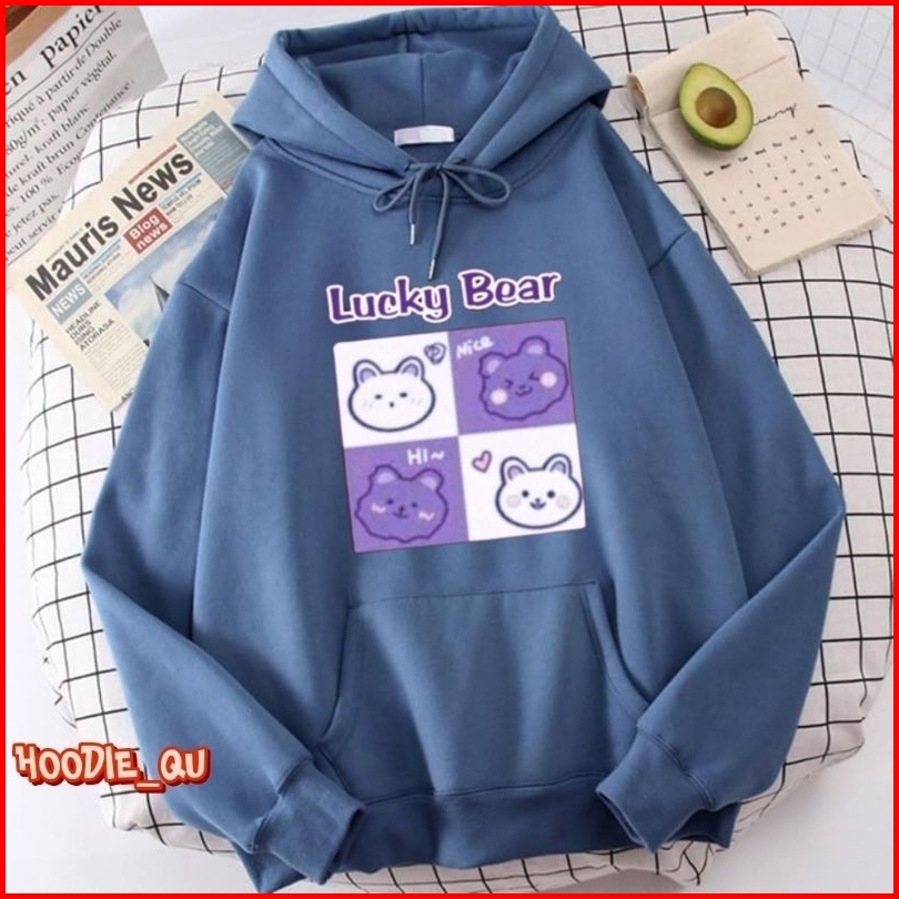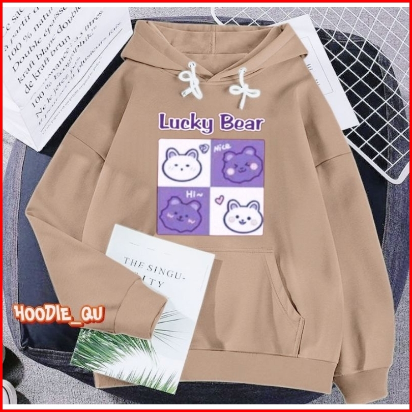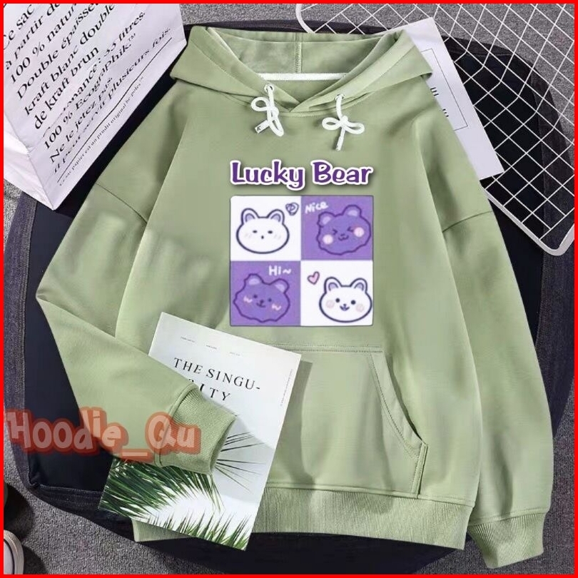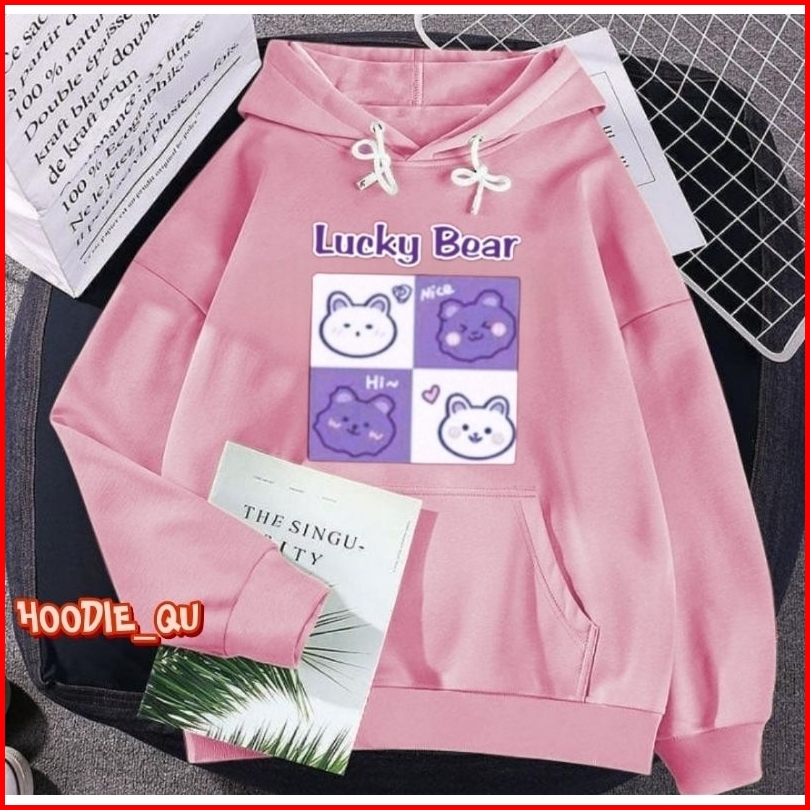 Lucky Bear Switer Hodie Wanita Dewasa Jaket Hoody Jemper Cewek Bahan Katun Fleece Size L