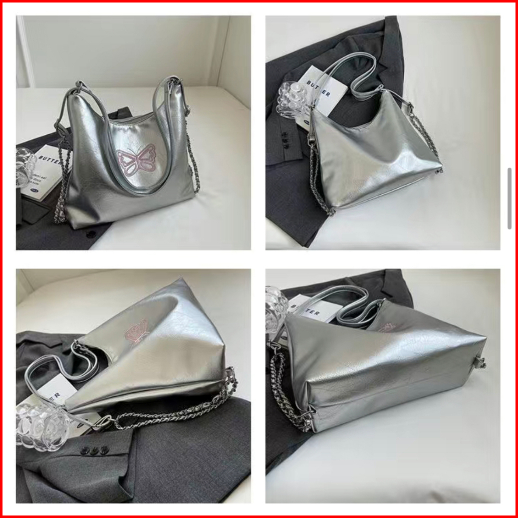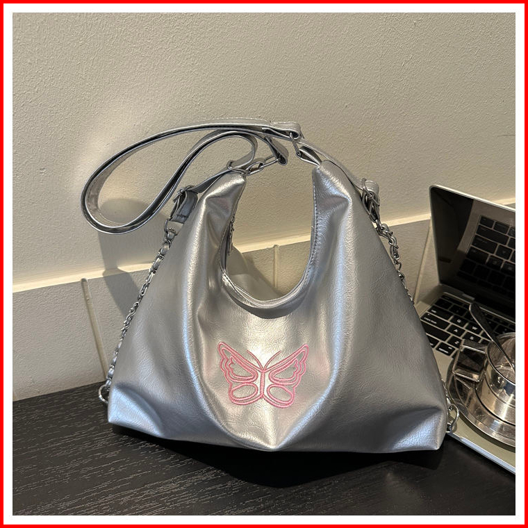 Ransel Wanita Kapasitas Besar Permukaan Lembut Kasual Ransel Gaya Baru Tas Ember Bahu Serbaguna Kupu-kupu Bordir Modis