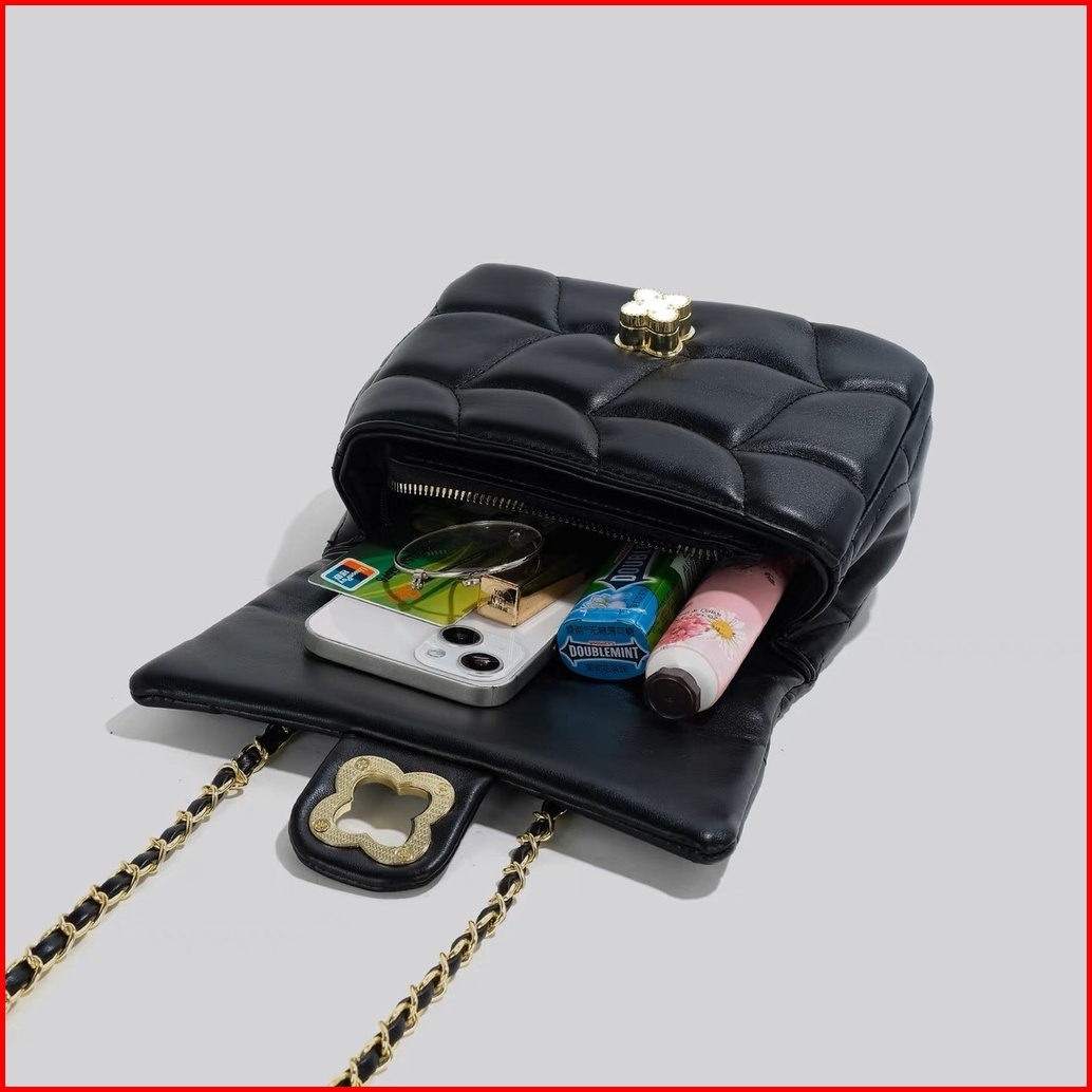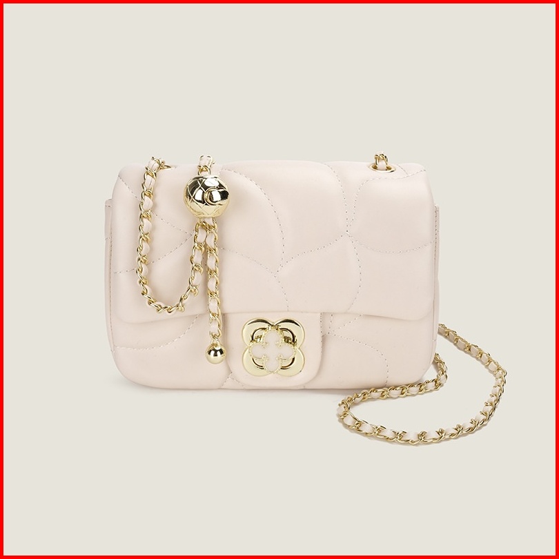 Tas Wanita 2023 Trendi Baru Rantai Bola Tas Persegi Kecil Empat Daun Semanggi Tas Bordir Fashion All-match Tas Diagonal