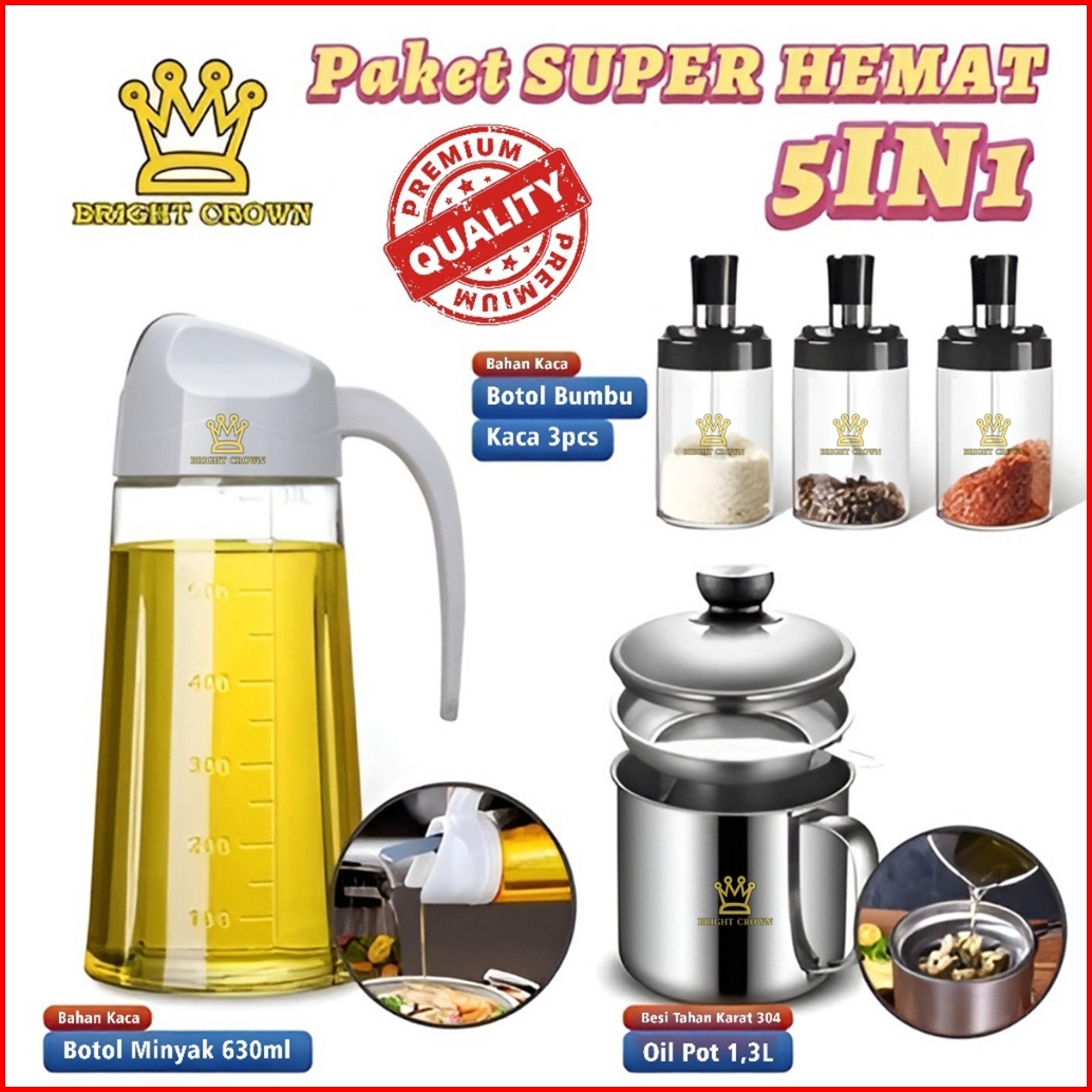 Bright Crown Paket Super Hemat 5in1 Botol Minyak Kaca 630ml Oil Pot 1 3l Tempat Bumbu Botol Kaca
