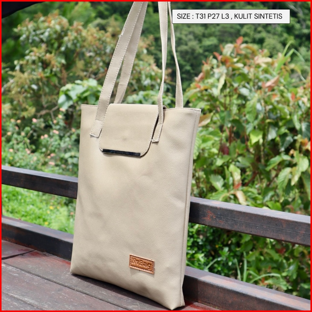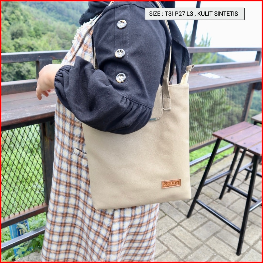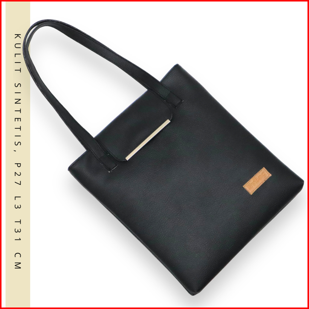 Tas Tote Bag Wanita Totebag Leather Polos Bahan Kulit Sintetis Buat Kuliah Model Kantong Depan