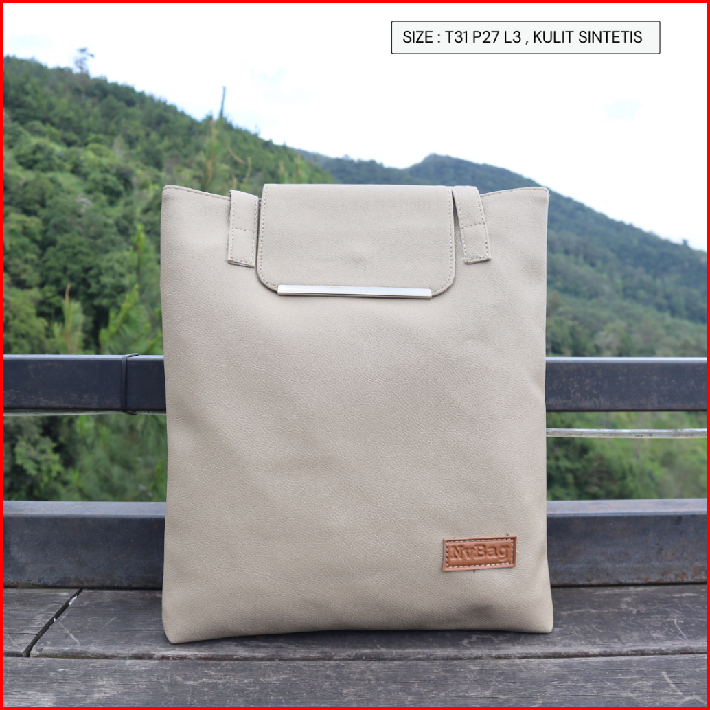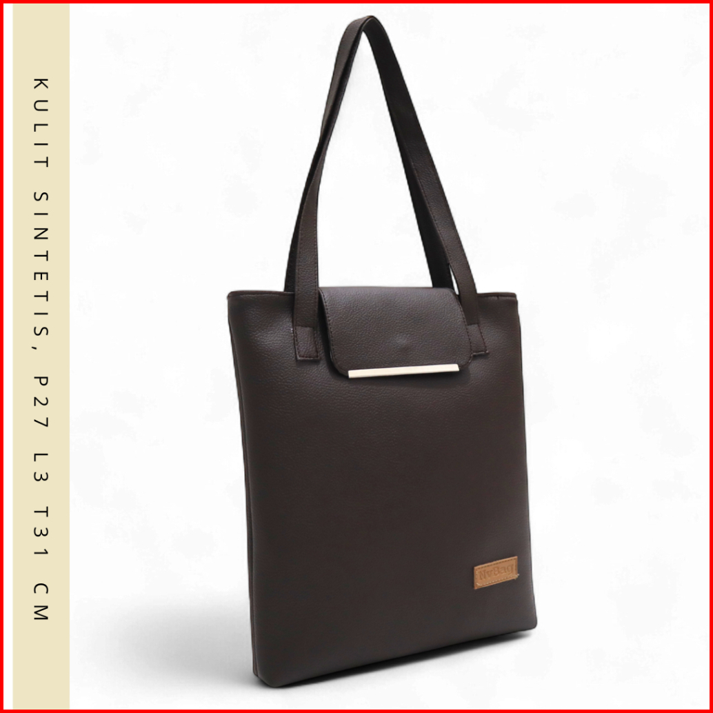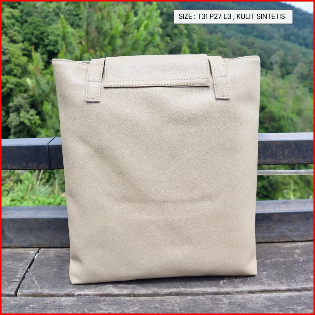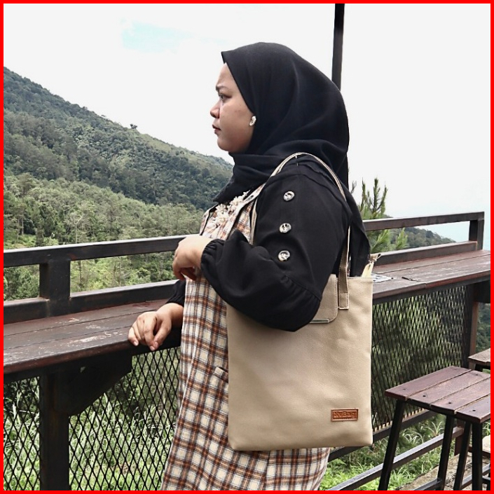 Tas Tote Bag Wanita Totebag Leather Polos Bahan Kulit Sintetis Buat Kuliah Model Kantong Depan