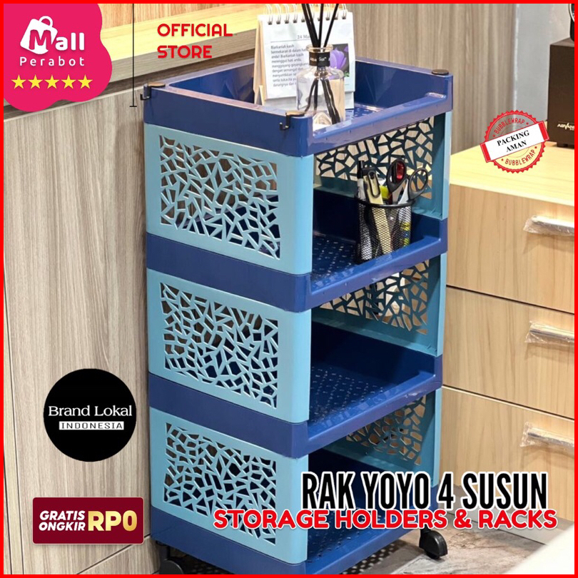 Mall Perabot Rak Apartemen Yoyo Plastik Serbaguna Persegi Panjang 4 Susun Tempat Penyimpanan Rak Toilet Kamar Mandi Rak