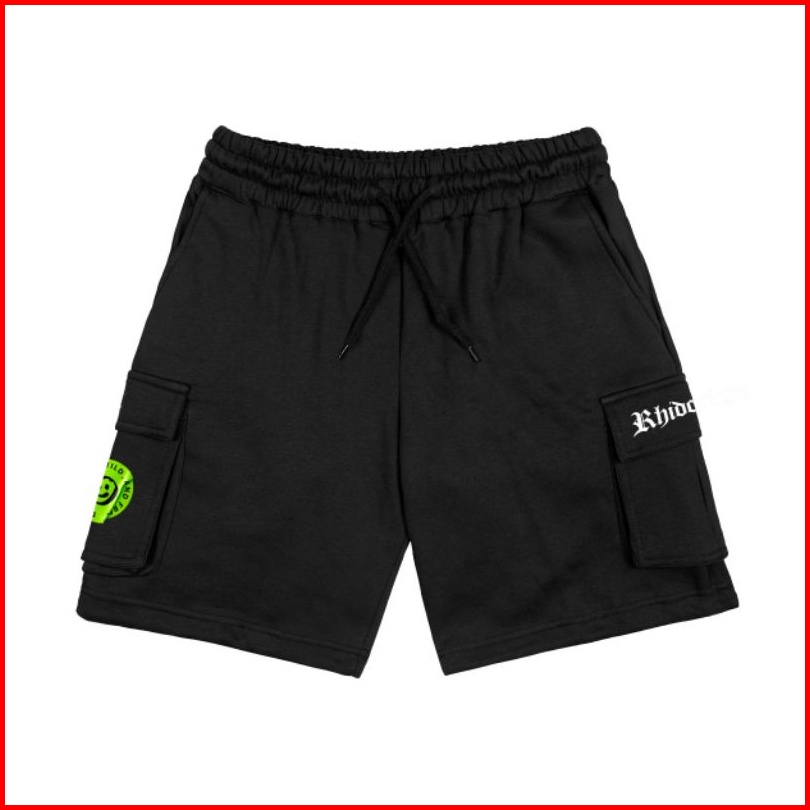 Rhid - Celana Pendek Pria Cargo Boardshort Shot Pants Bahan Fleece- Black