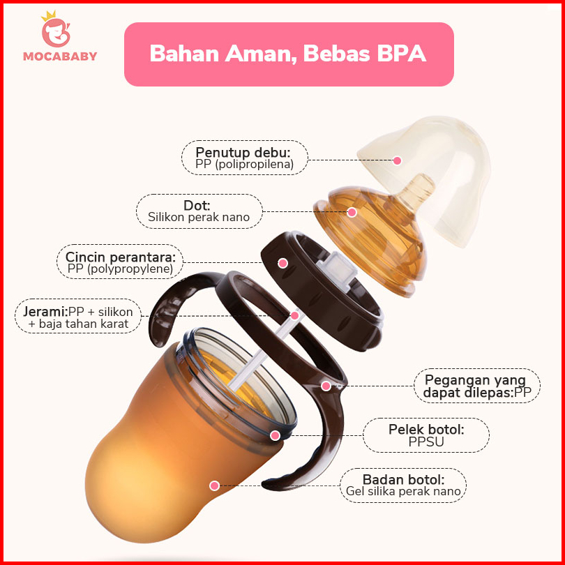 Mocababy Dot Bayi Botol Silikon Piko Bello Nano Botol Susu Bayi Dengan Sedotan Feeding Bottle Natural Nursing Bottle Den