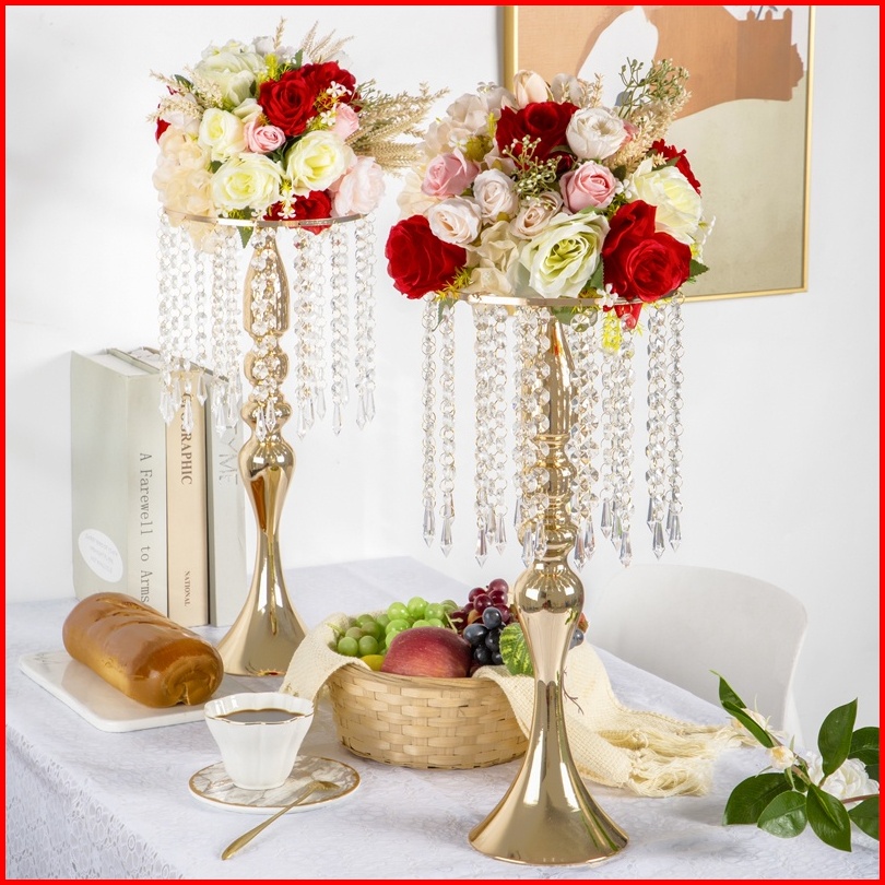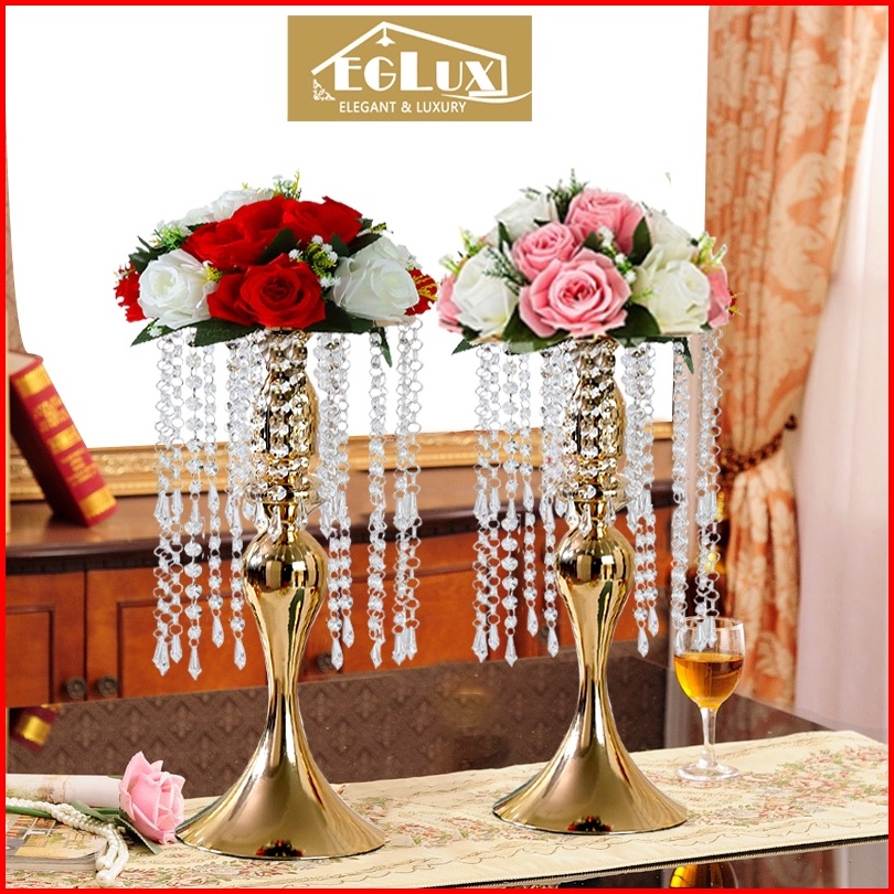 Vas Bunga Hiasan Dekorasi Ruang Tamu Mewah Pajangan Lemari Kaca Luxurious Wedding Vase Decoration Dengan Tetesan Kristal