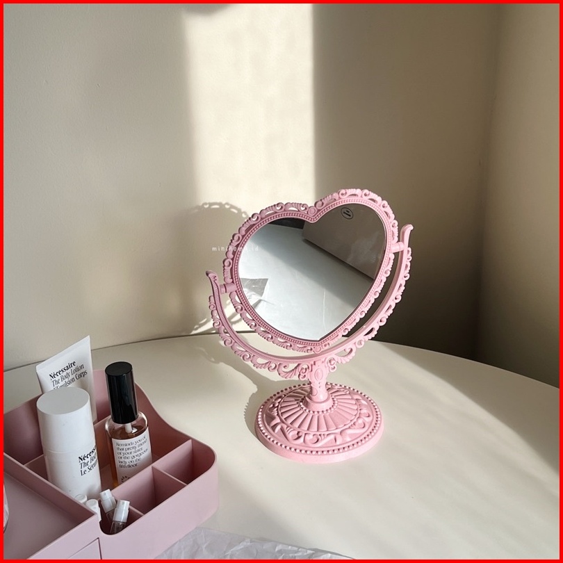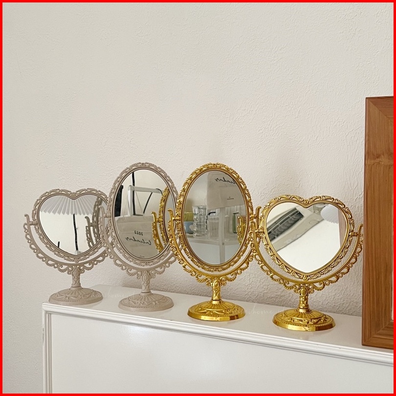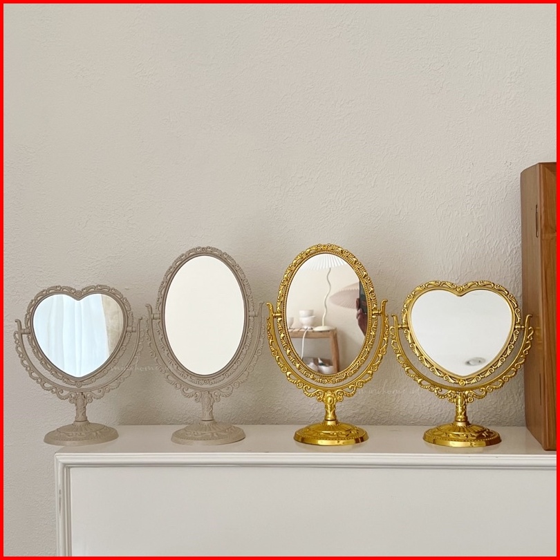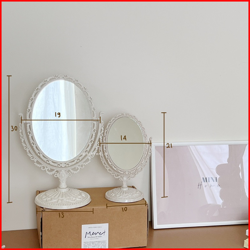 Minihome Cermin Kaca Rias Makeup Putar Oval 2 Sisi Putih Dekorasi Vintage Korean Aesthetic Retro Home Decor Ins Nordic S