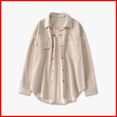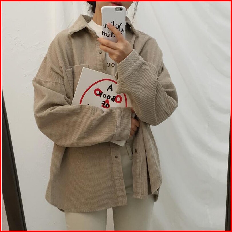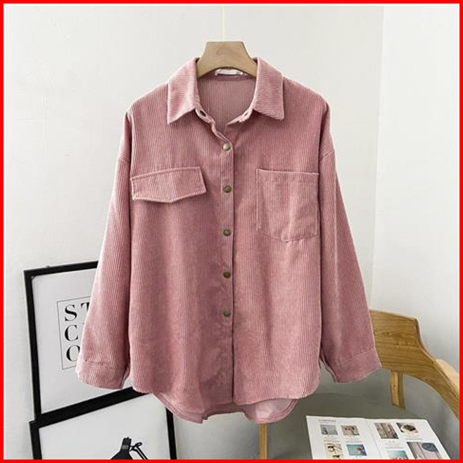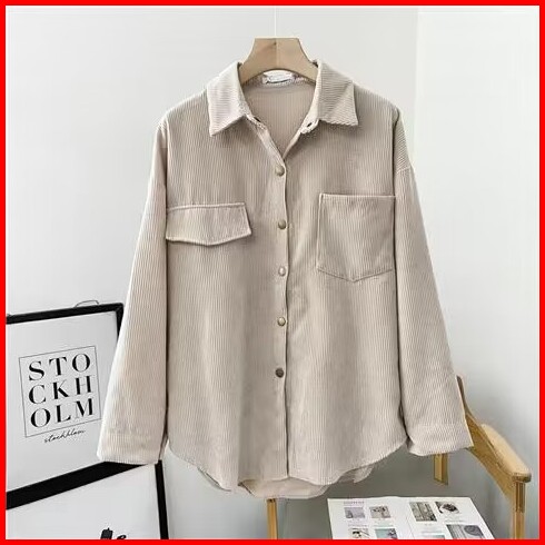 Oversize Kemeja Wanita Lengan Panjang Model Longgar Bahan Corduroy Jaket