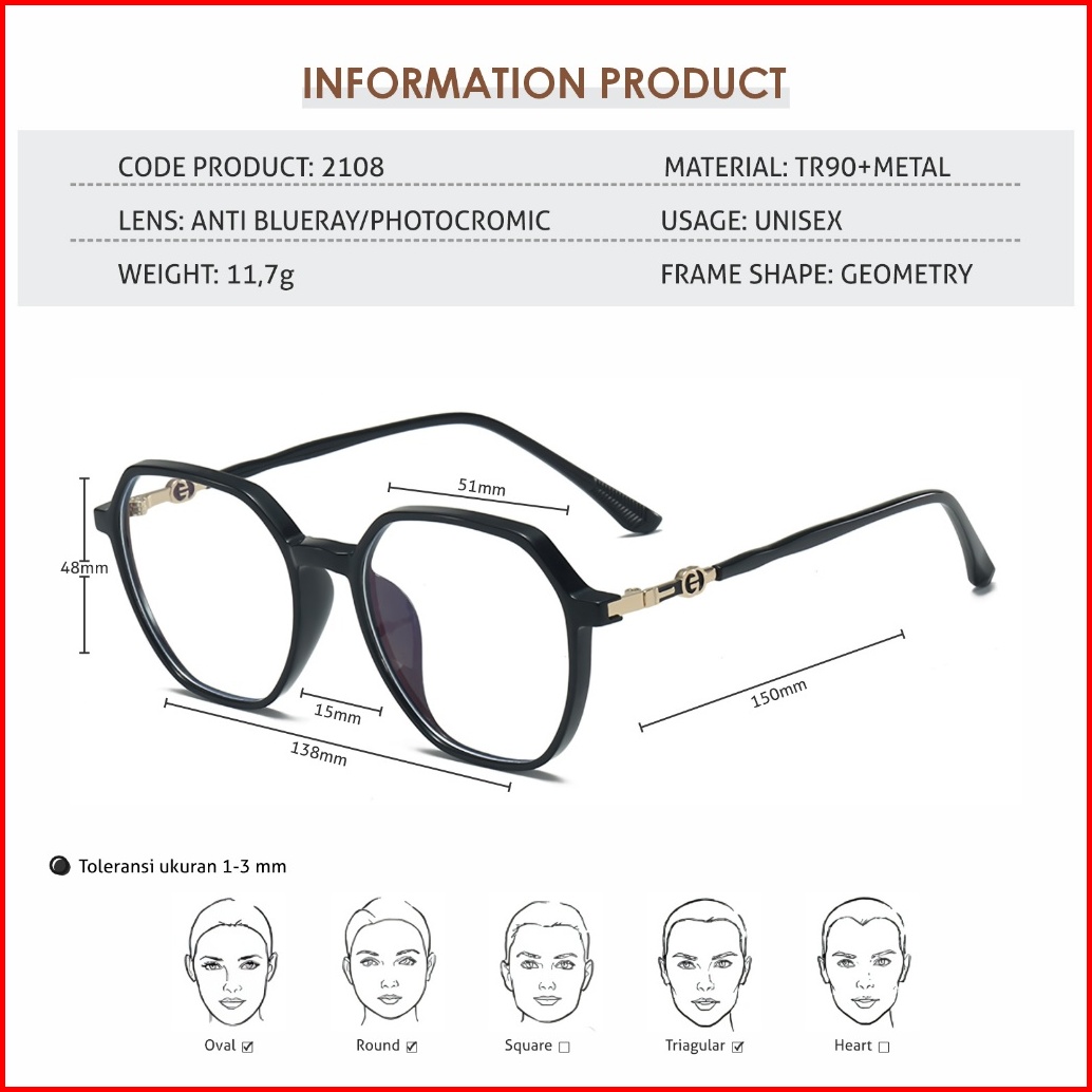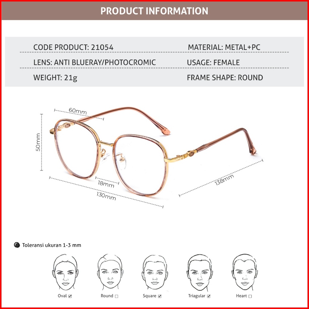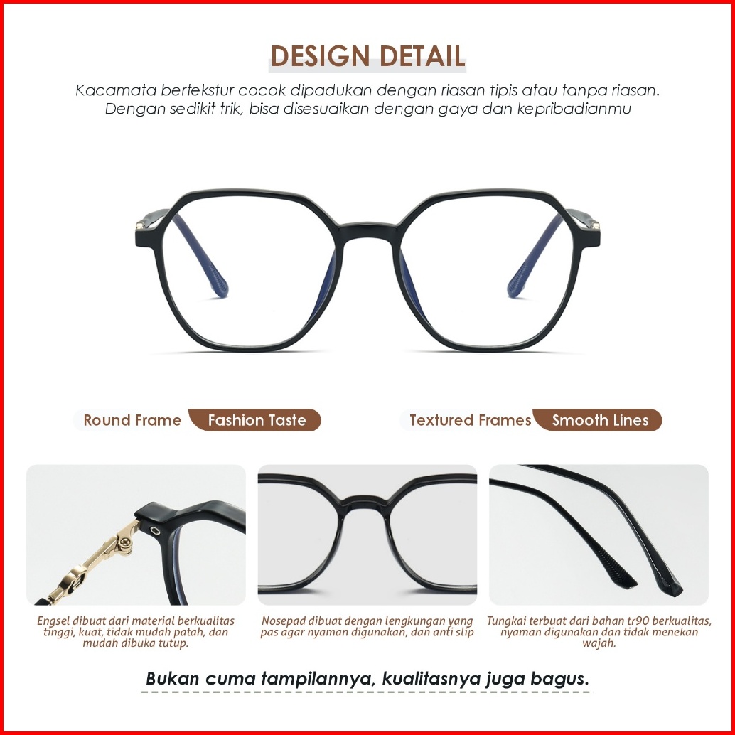 La Chapella Kacamata Minus Photocromic Anti Radiasi Blueray Bluecromic Geometri Bulat Tr-90 Metal Lentur Ringan Fashiona