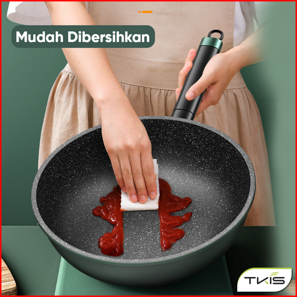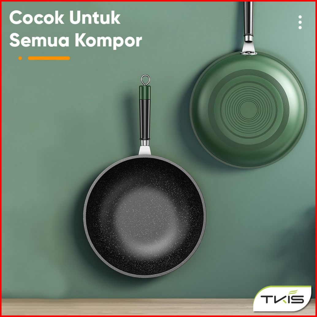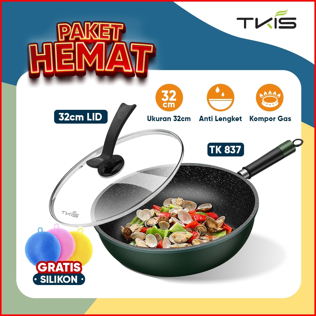 Tkis Paket Hemat Wajan Dengan Tutup Kaca 32cm Panci Wok Pan Anti Lengket Batu Medis Tk-837 Tutup