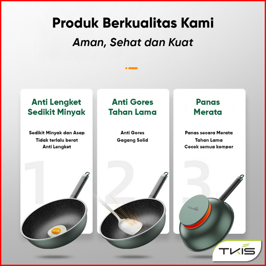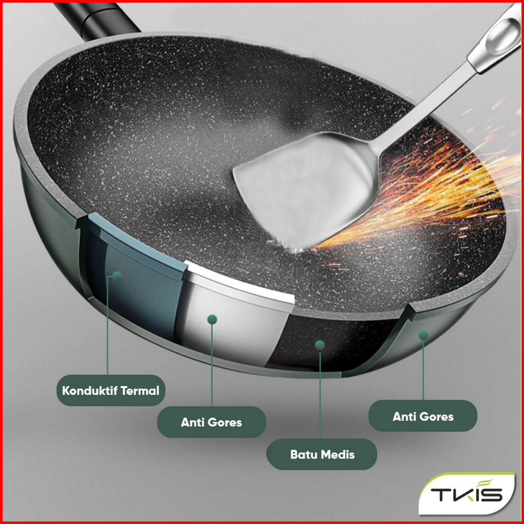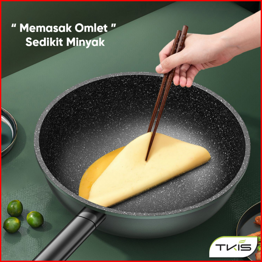 Tkis Paket Hemat Wajan Dengan Tutup Kaca 32cm Panci Wok Pan Anti Lengket Batu Medis Tk-837 Tutup