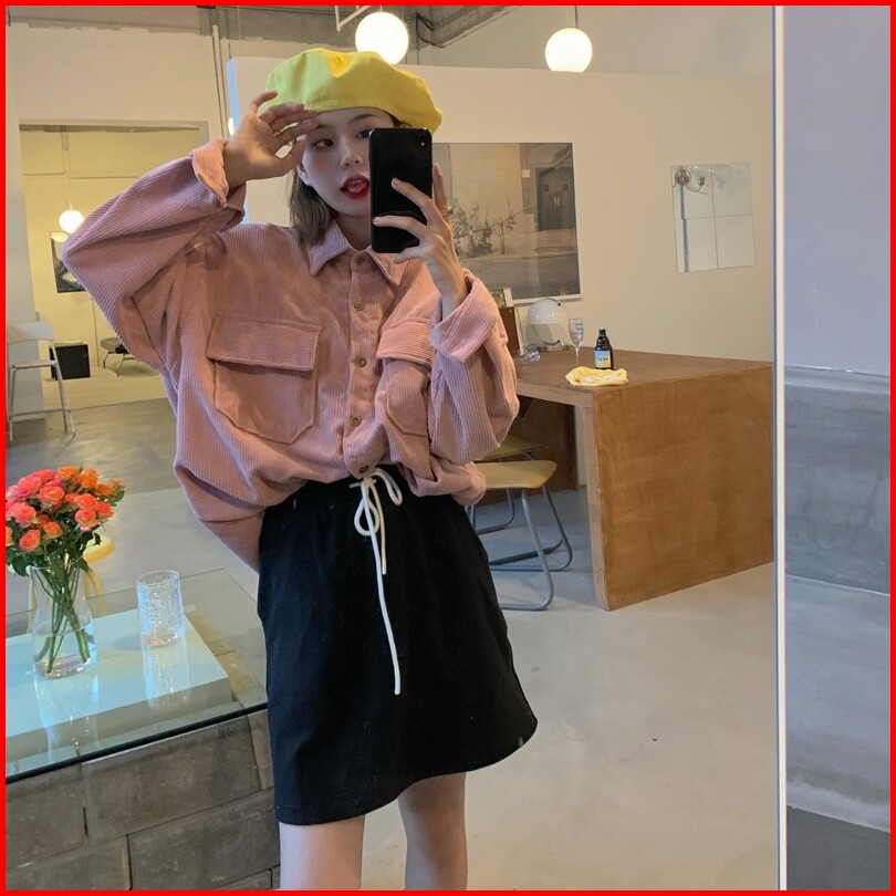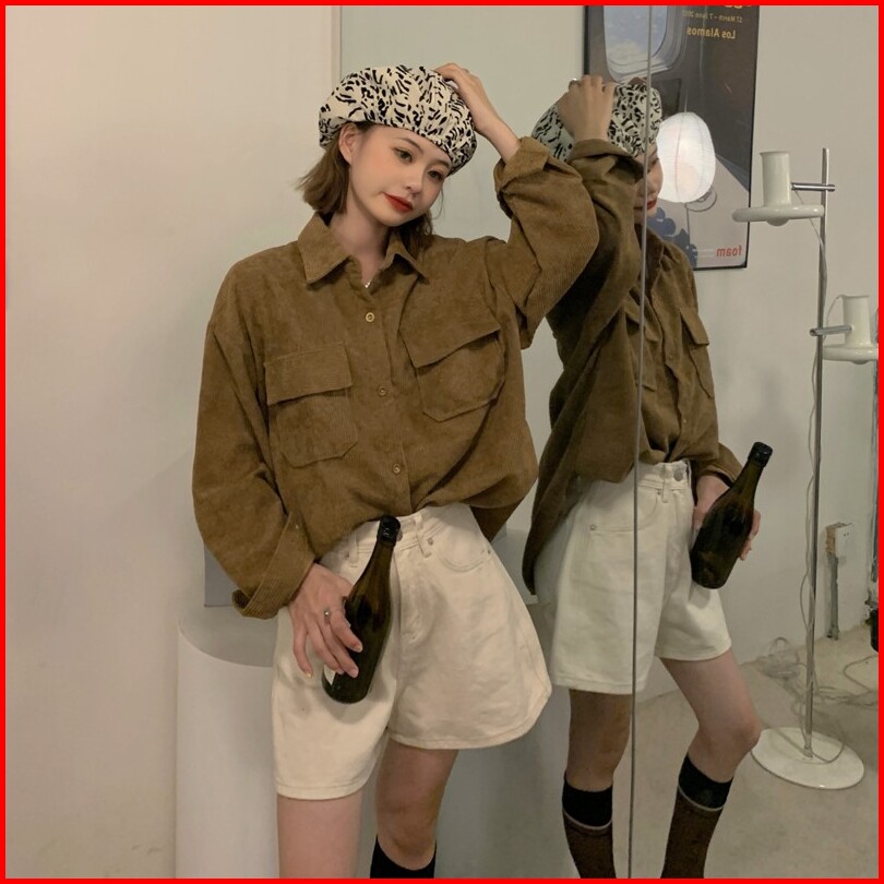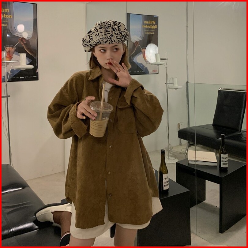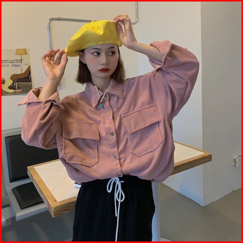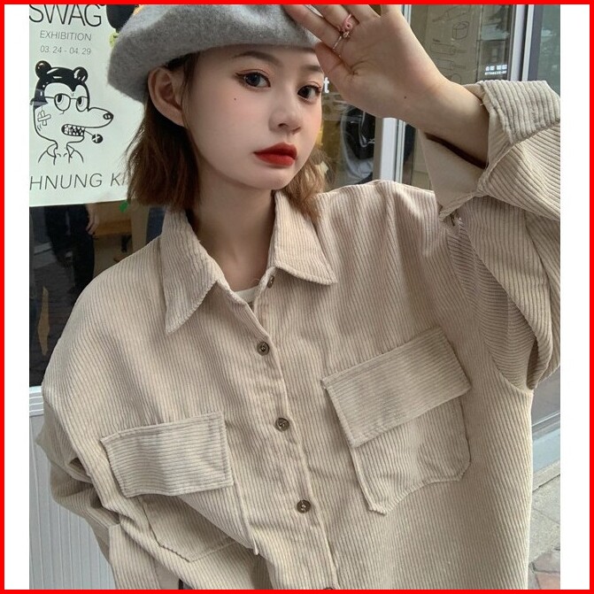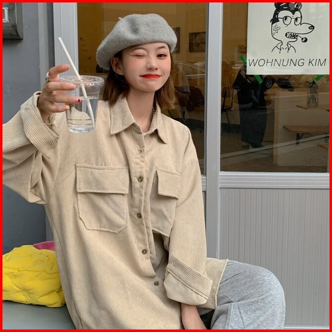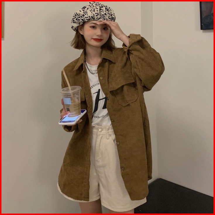 Kemeja Wanita Lengan Panjang Korduroi Korea Jaket Kemeja All-match Atasan Longgar