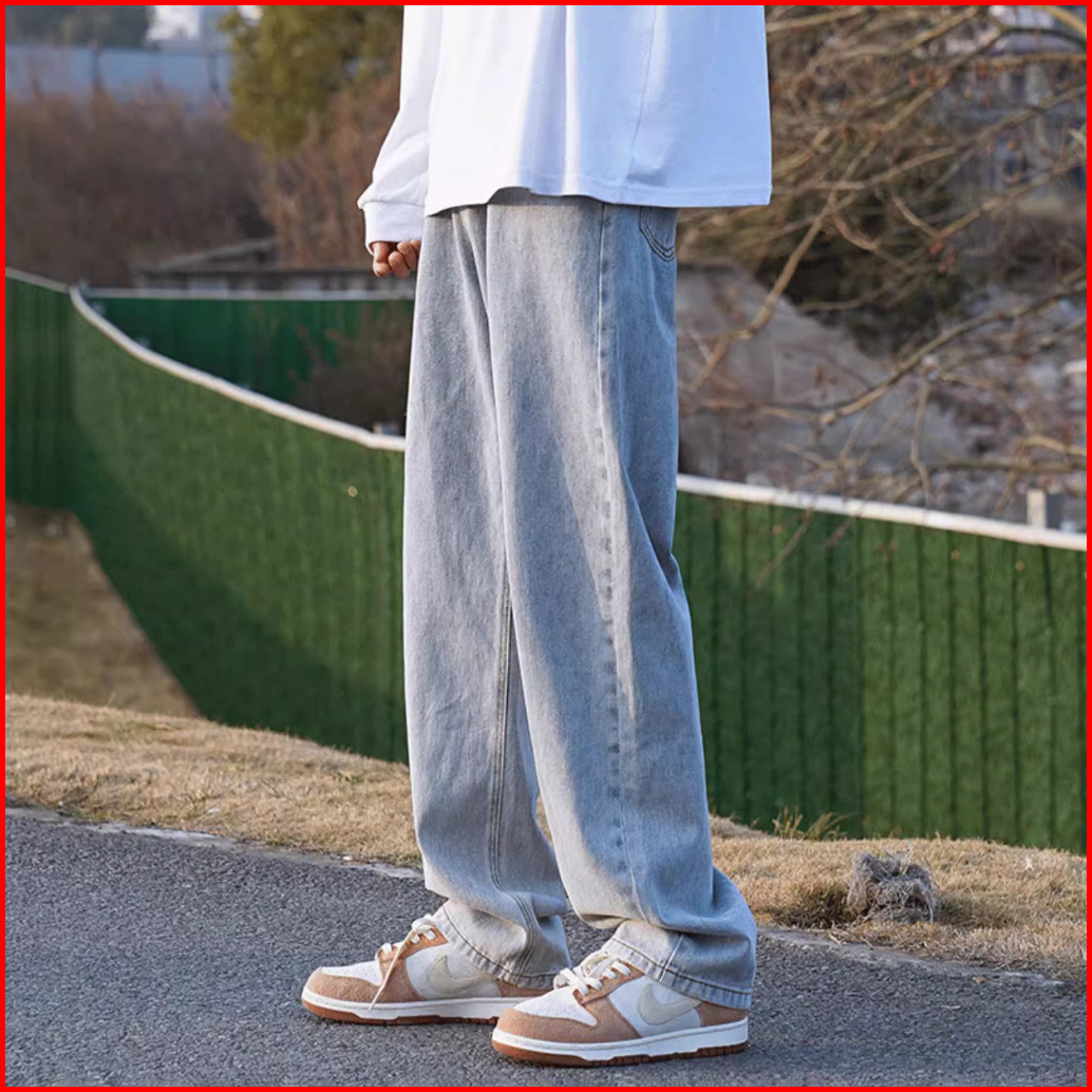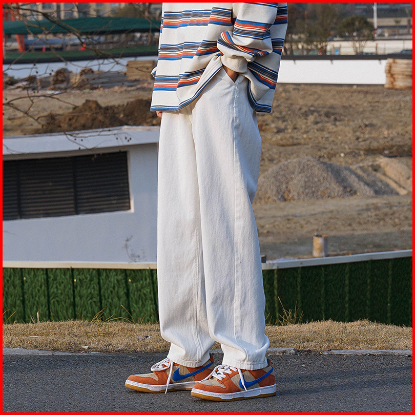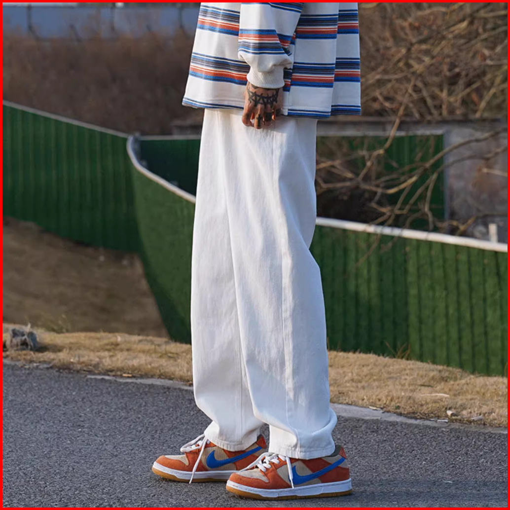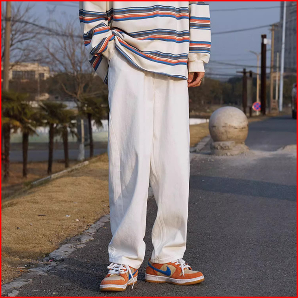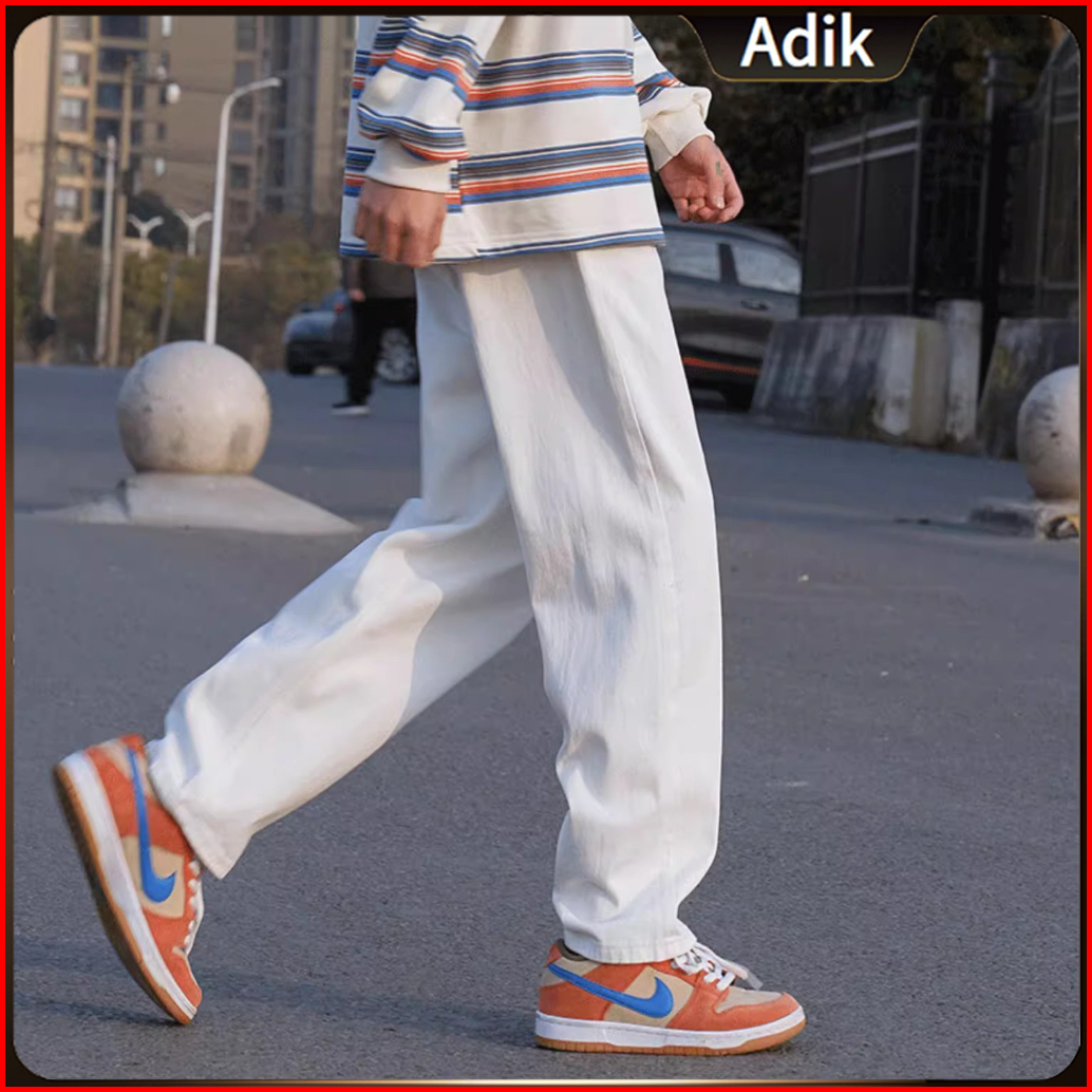Celana Jeans Pria Korean Style Oversize Straight Jeans Longgar Celana Panjang Pria Baggy Pants Putih Celana Kulot Gombra