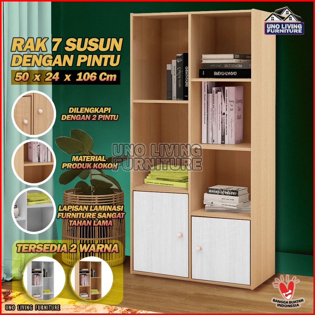 Lemari Rak Buku Serbaguna 7 Rak Kayu Terbaru Murah Lemari Buku Lemari Pintu Rak Buku Portable