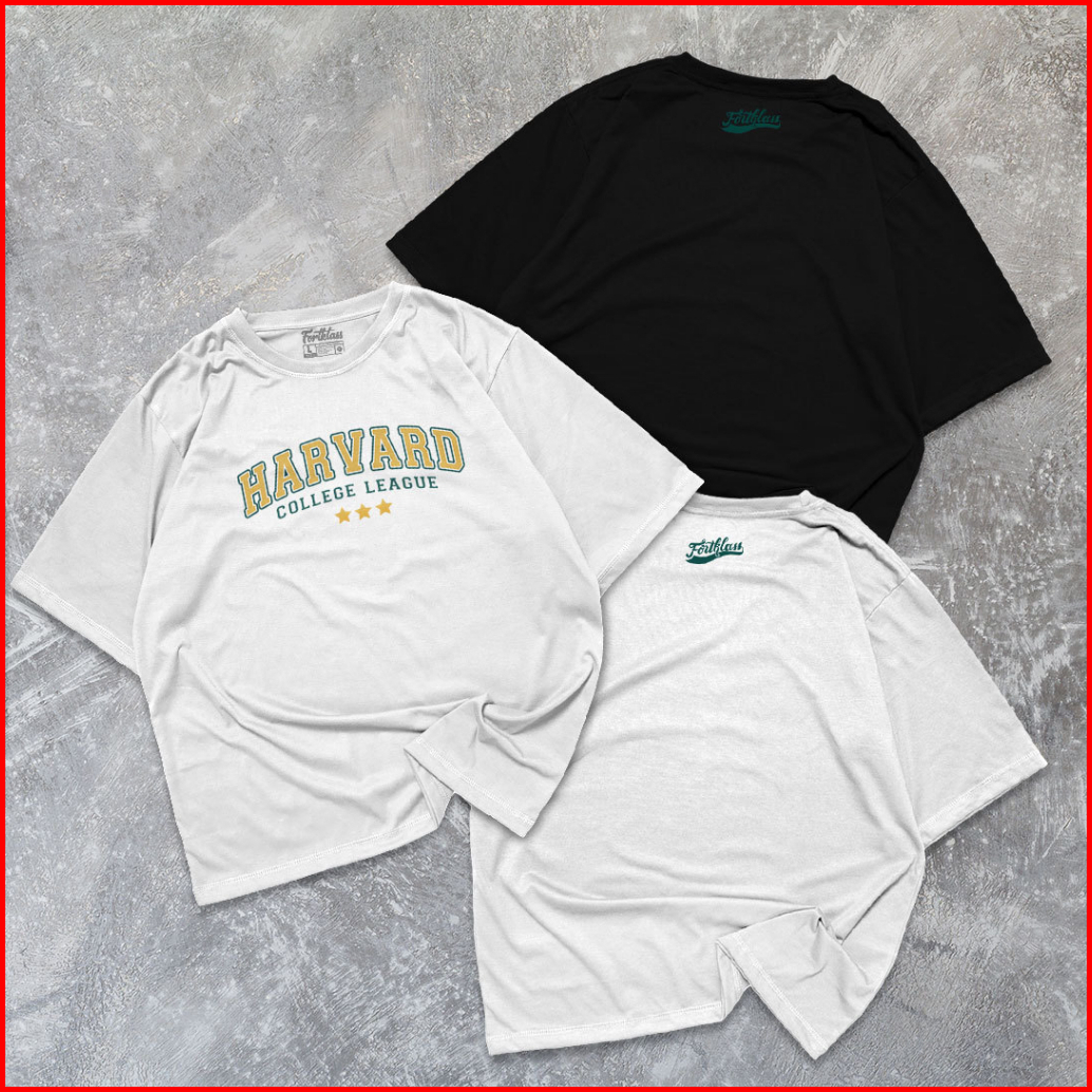 Fortklass Kaos Oversize Harvard T-shirt Cowok Premium Kaos Pria Lengan Pendek Jumbo