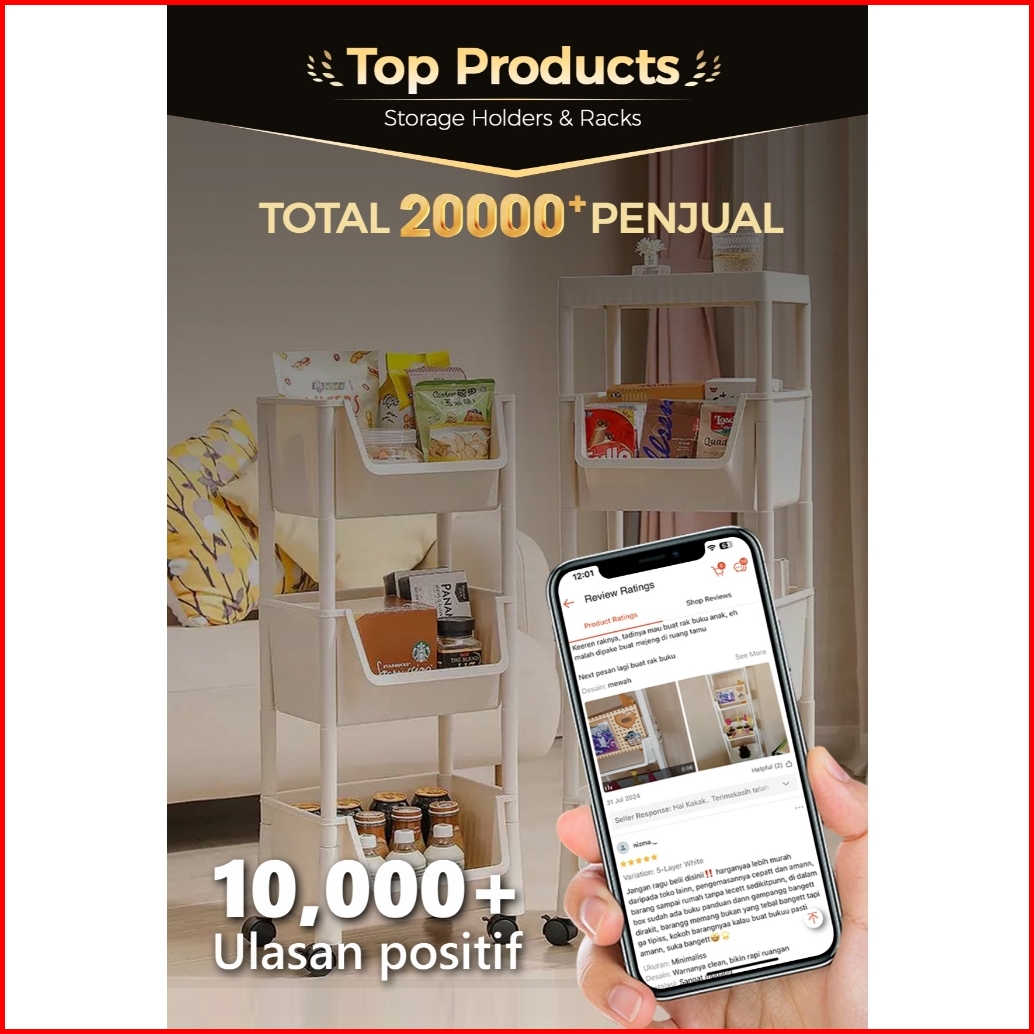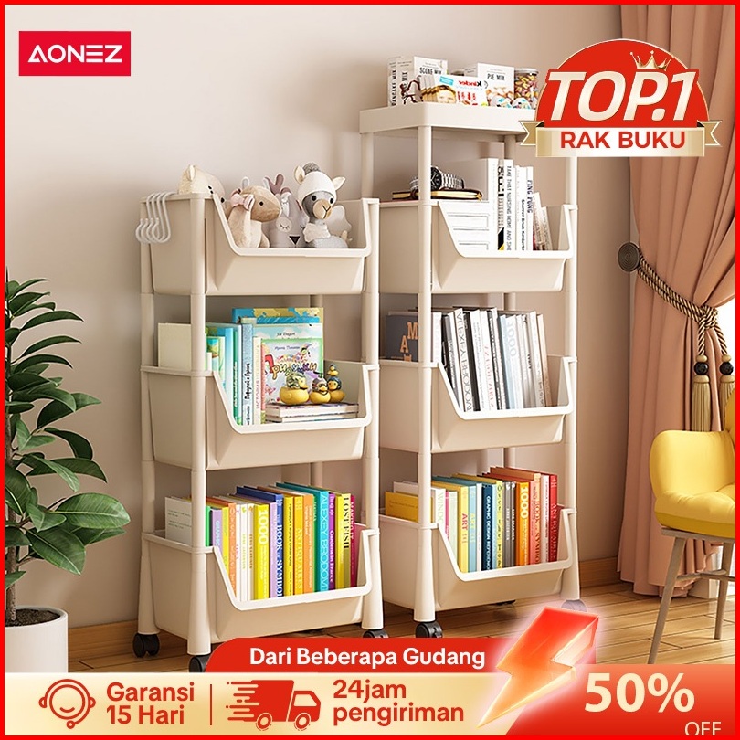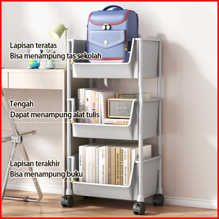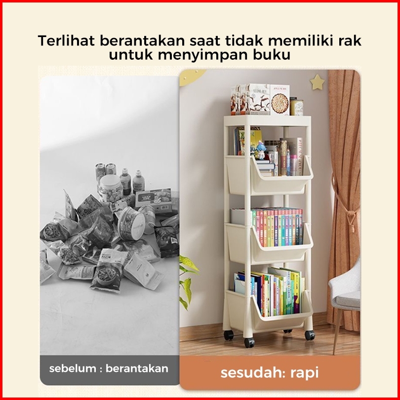 Homes Rak Buku Minimalis Aesthetic Rak Penyimpanan Rak Dapur Serbaguna Rak Susun Dengan Roda