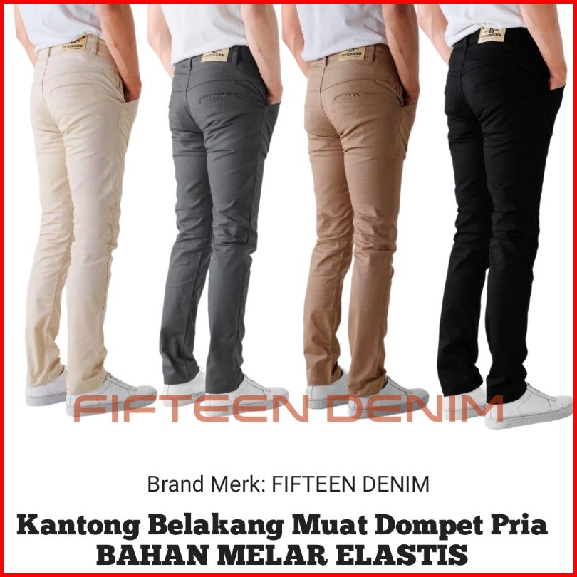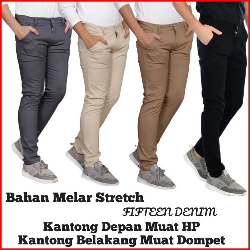 Celana Chino Chinos Panjang Pria Fifteen Denim Bahan Melar Kerja Cowo Santai Liburan Cowok Nongkrong Main Jalan