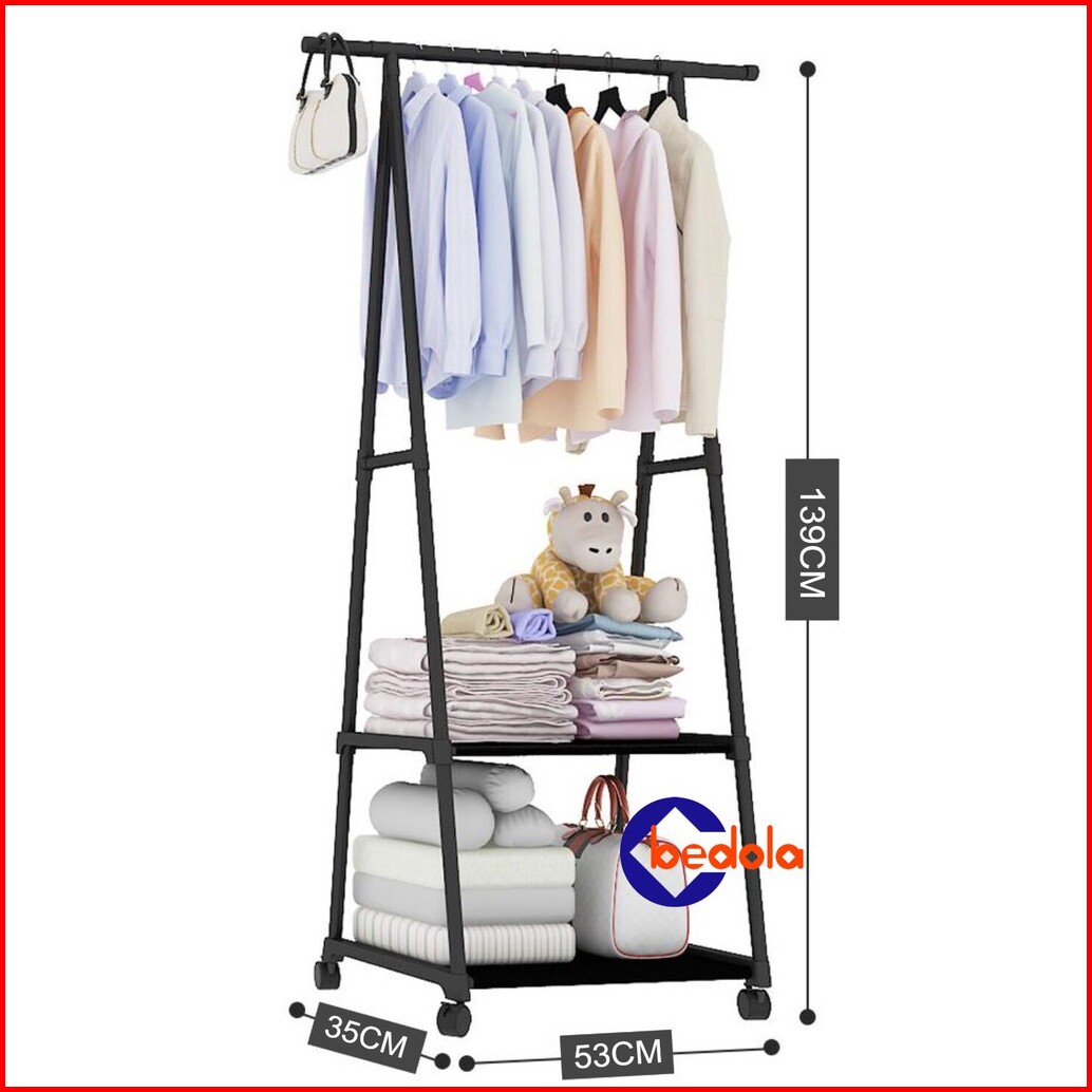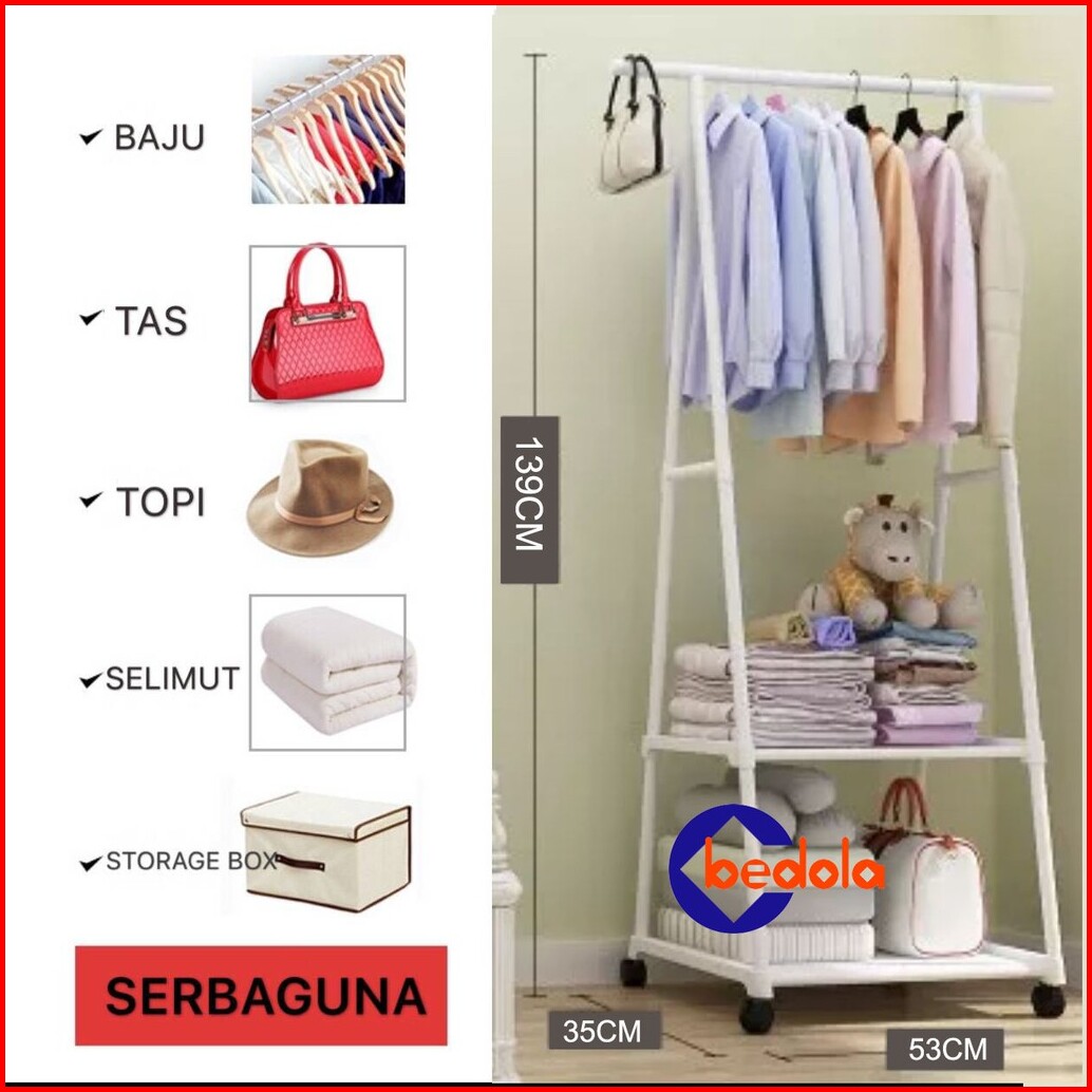 Triangle Stand Hanger Baju Rak Buku Rak Pakaian Rak Gantungan Baju Rak Susun Serbaguna Tempat Baju Dengan 4 Roda