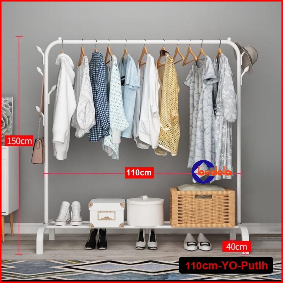 Stand Hanger Single Rak Gantungan Baju Pakaian Hanger Topi Tas Jemuran Baju Besi Ada 8 Cantolan