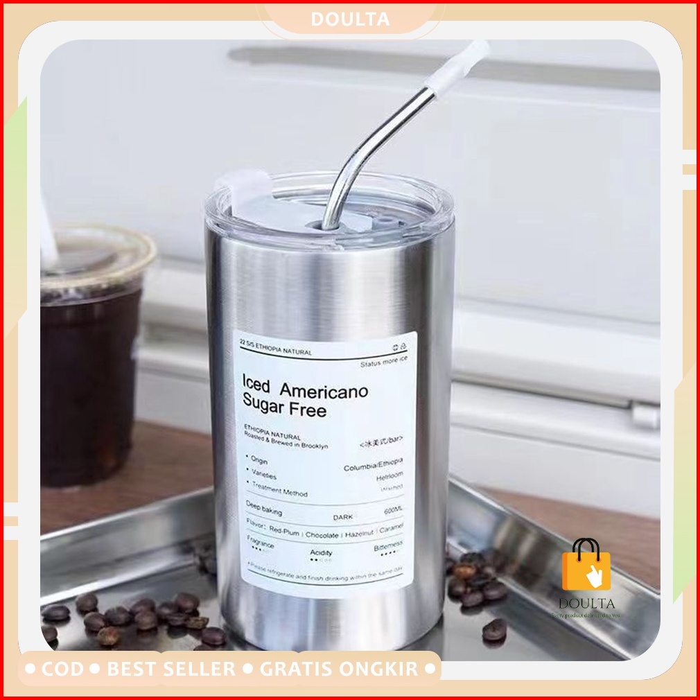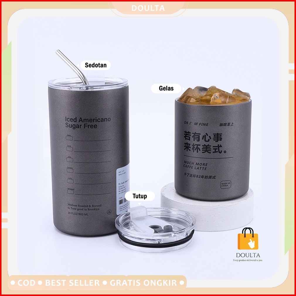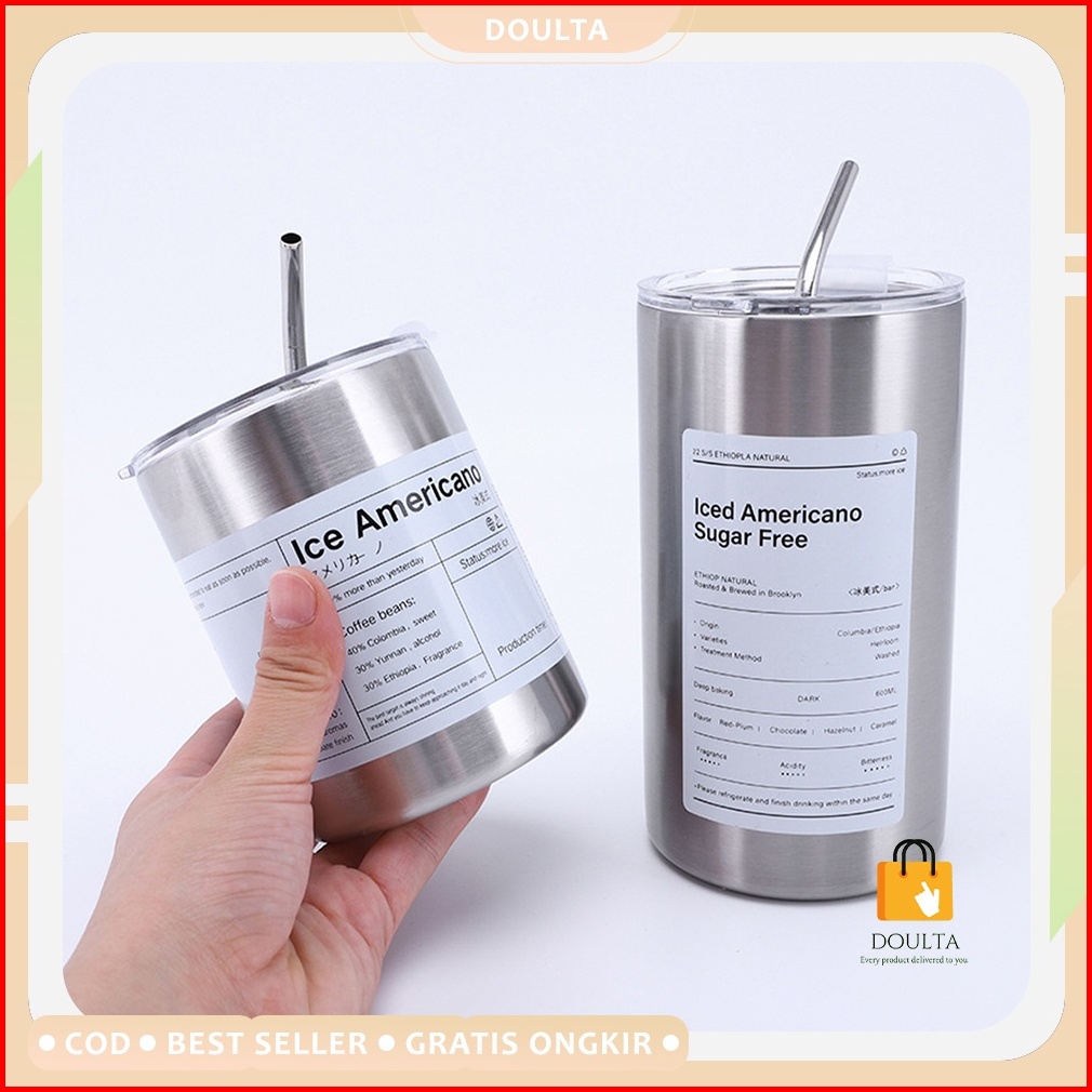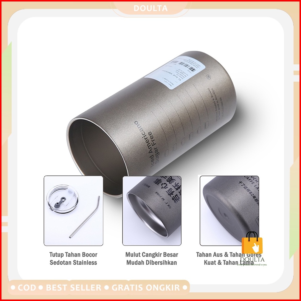 Gelas Tumbler Vakum Tahan Panas Stainless 304 Anti Tumpah Cangkir Termos Kopi Dengan Sedotan