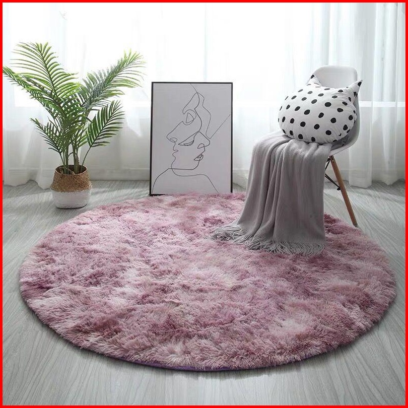 Karpet Bulat Ombre Ombre Warna Diamater 100cm Karpet Bulu Lantai Bulat