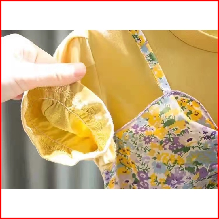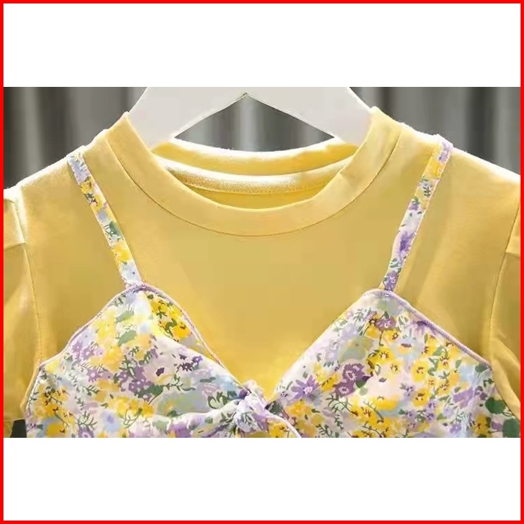 Setelan Anak Perempuan Celana Jeans Pendek Kaos Lucu Bahan Cottom Import Uisa 9bulan-4tahun