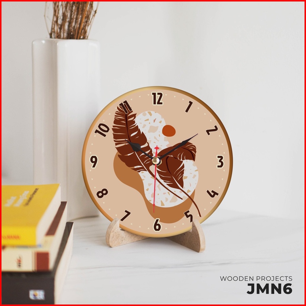 Wooden Projects Jam Meja Hiasan Kamar Unik Motif Nordic Dekorasi Pajangan Dinding Rumah - Jmn6