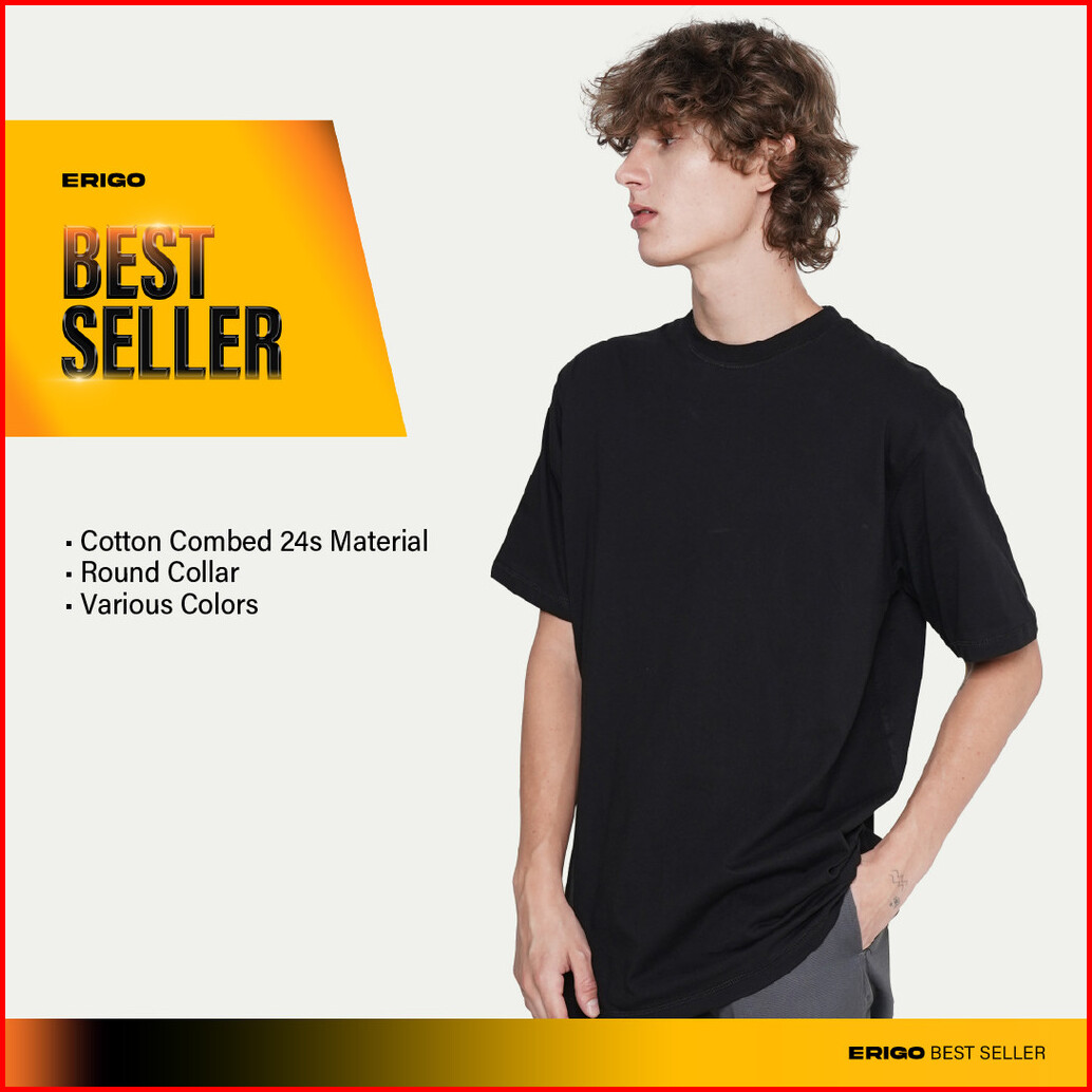 Erigo T-shirt Basic Meghan Black - Kaos Oversize Polos Unisex